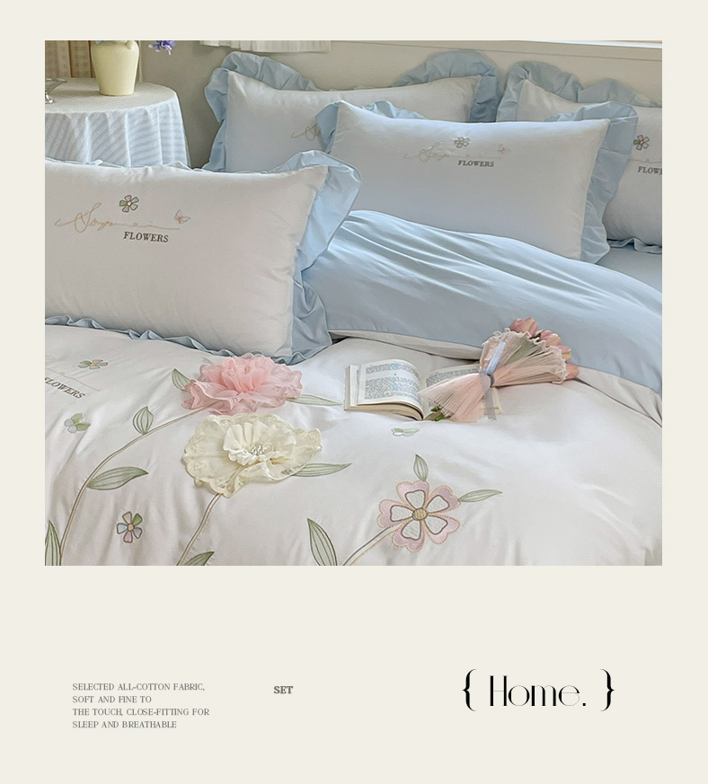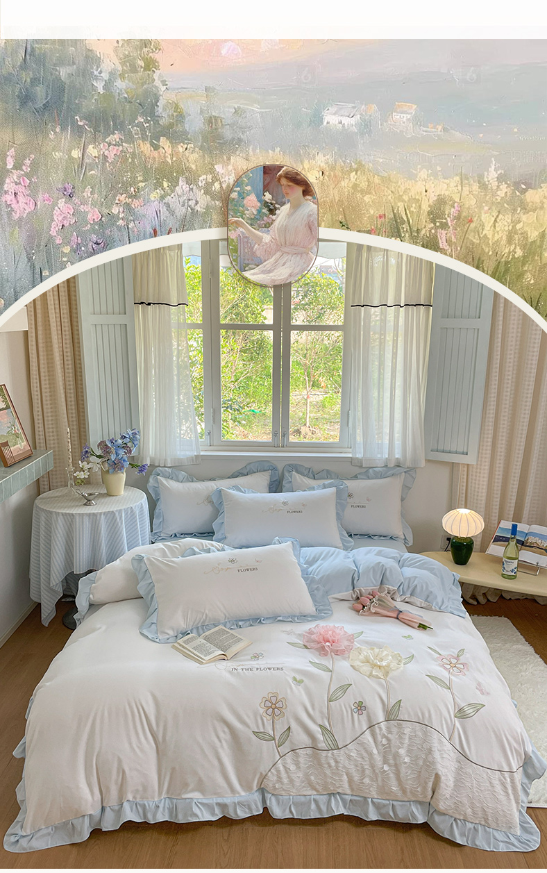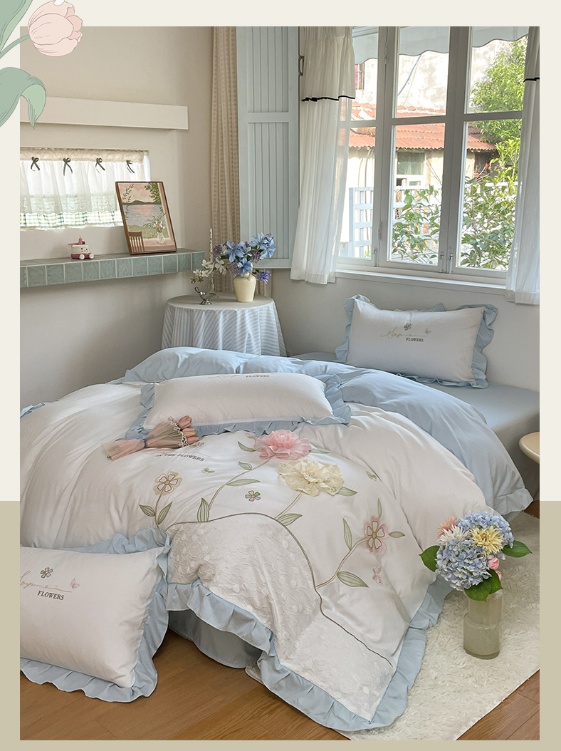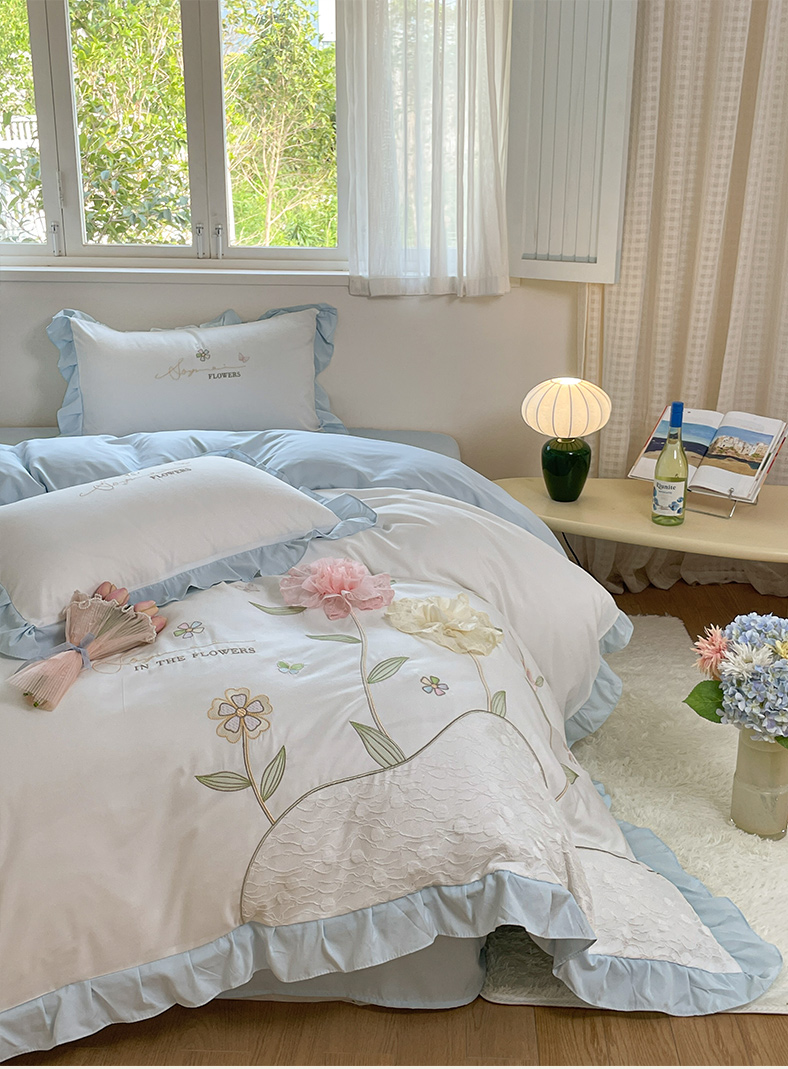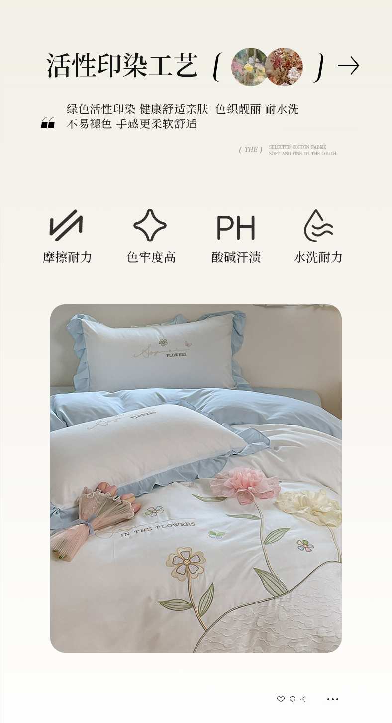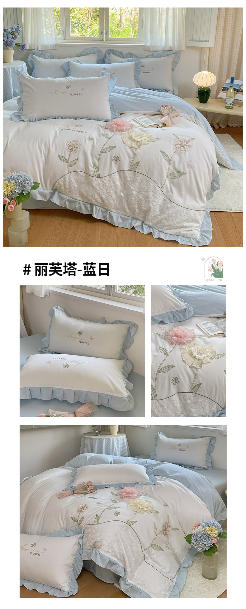 当前位置: 91家纺网 > 商品网购 > 床品套件 > 四件套 > 水洗棉四件套 > ab家纺 2025新款丽芙塔水洗棉蕾丝绣花四件套 丽芙塔-蓝日