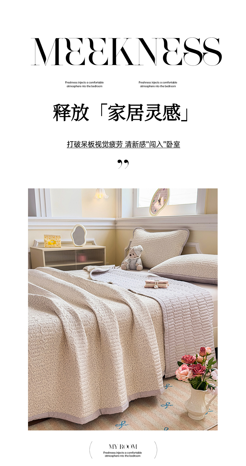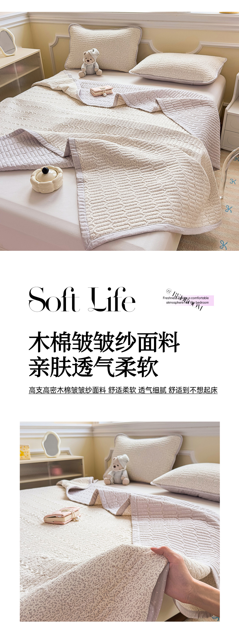 商品名称:芯元素 2025新款木棉绉绉纱双面可用床盖 梦境-灰