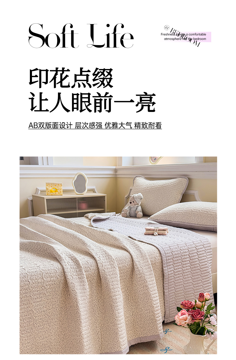 (总)芯元素 2025新款木棉绉绉纱双面可用床盖,紫恋,花季,梦境-灰,梦境-紫,山野栀子,小城故事