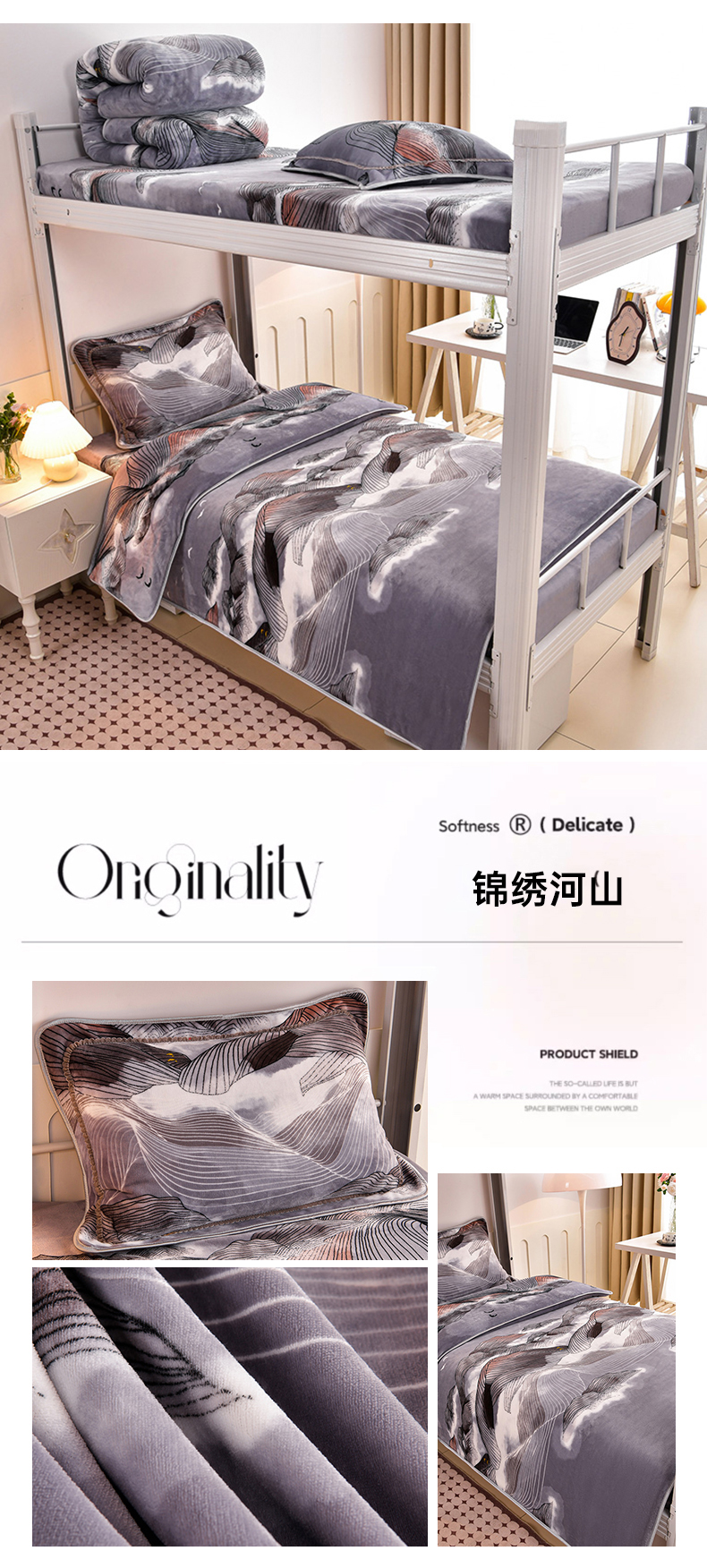 商品名称:硕喜 2025新款学生宿舍床系列牛奶绒学生三件套 锦绣河山
