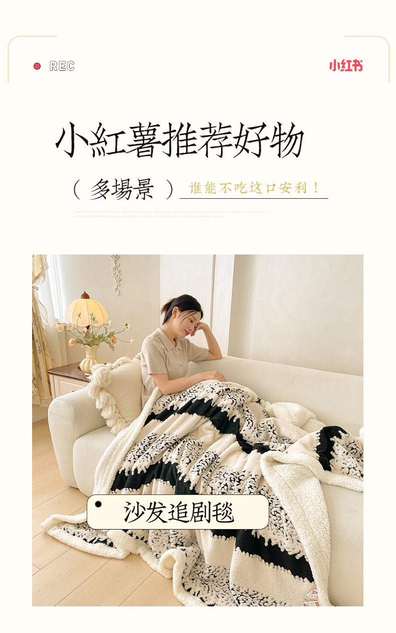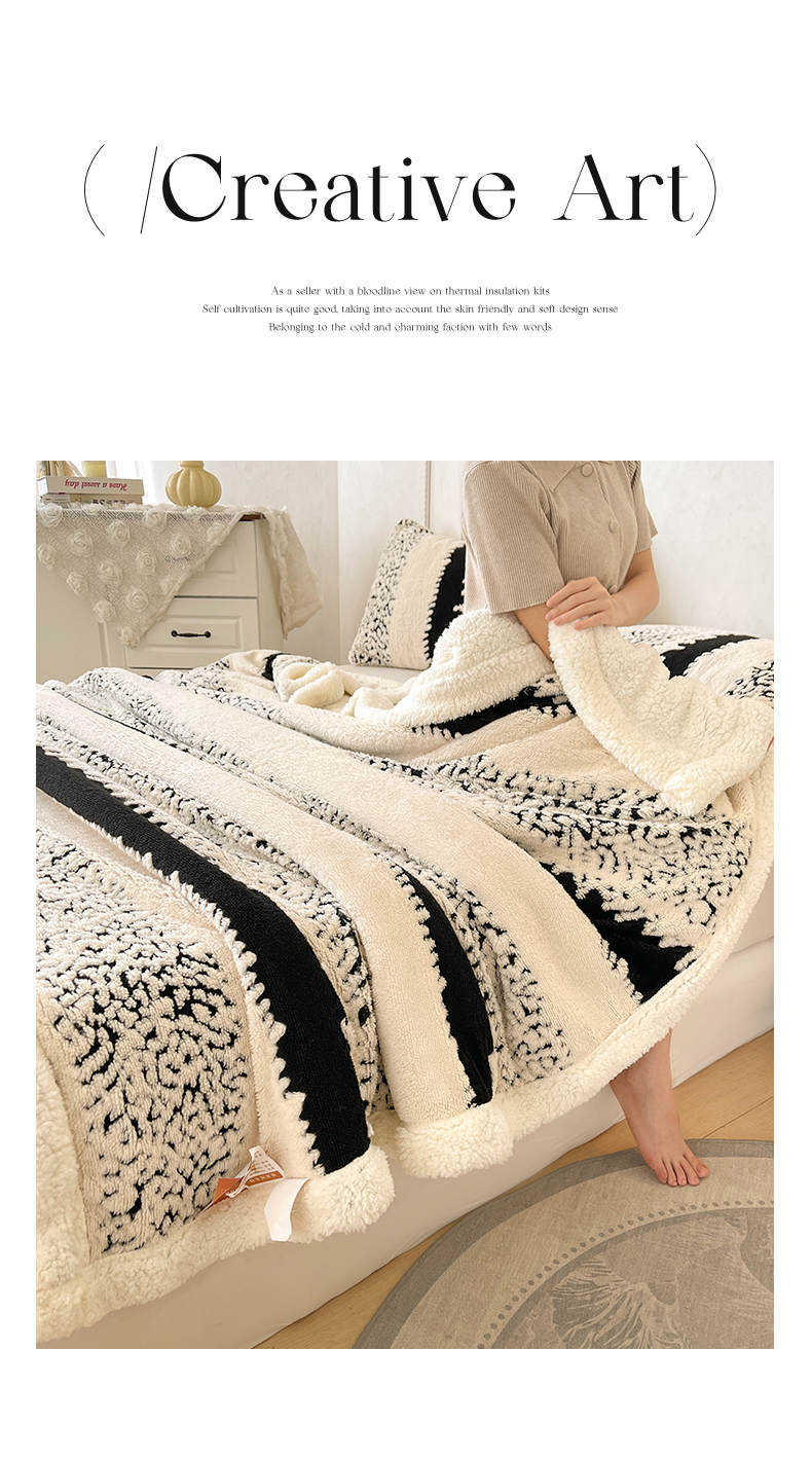 商品名称:雯豆家纺 2025秋冬新款舒棉绒毛毯多功能盖毯子雕花剪花毯子 米兰-光影