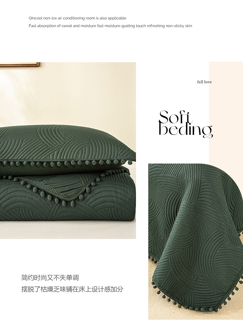 商品名称:81号家纺 2025新款亲肤水洗棉夹棉四季款床盖三件套 橄榄绿