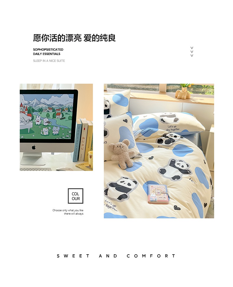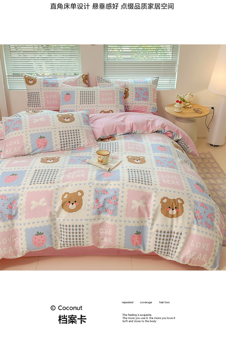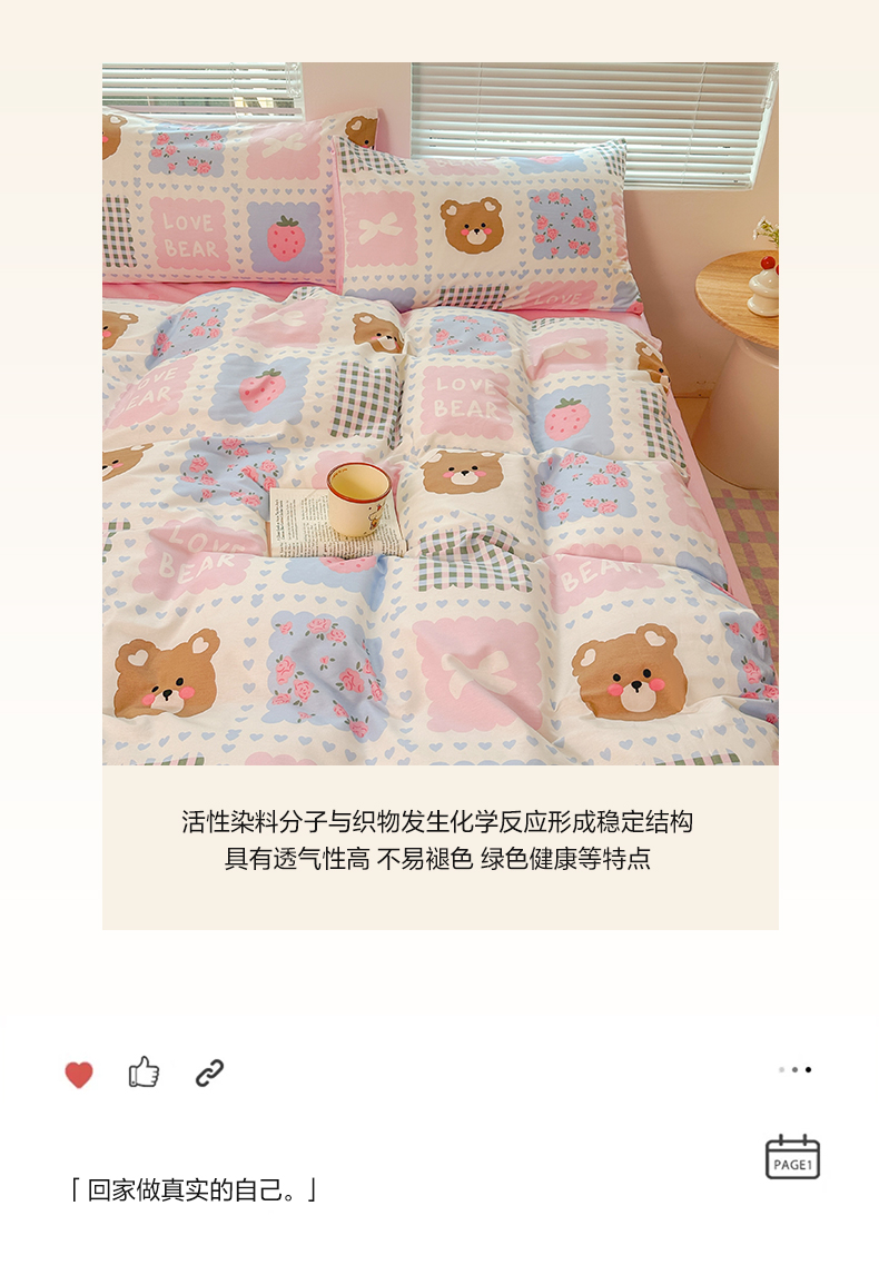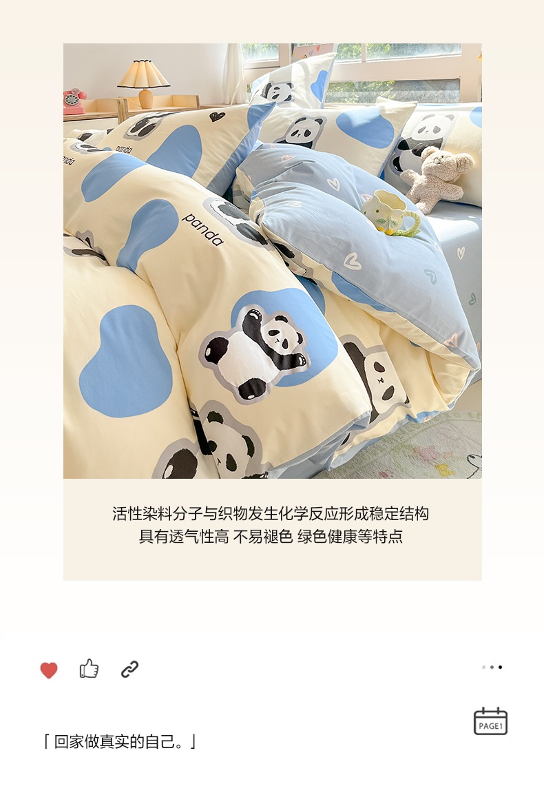 (总)麦田家纺 2026新款全棉13070数码印花四件套,彩虹小狗,唱片小猫,蜜蜂小熊,苹果小狗,悠闲企鹅(粉),悠闲企鹅(蓝)