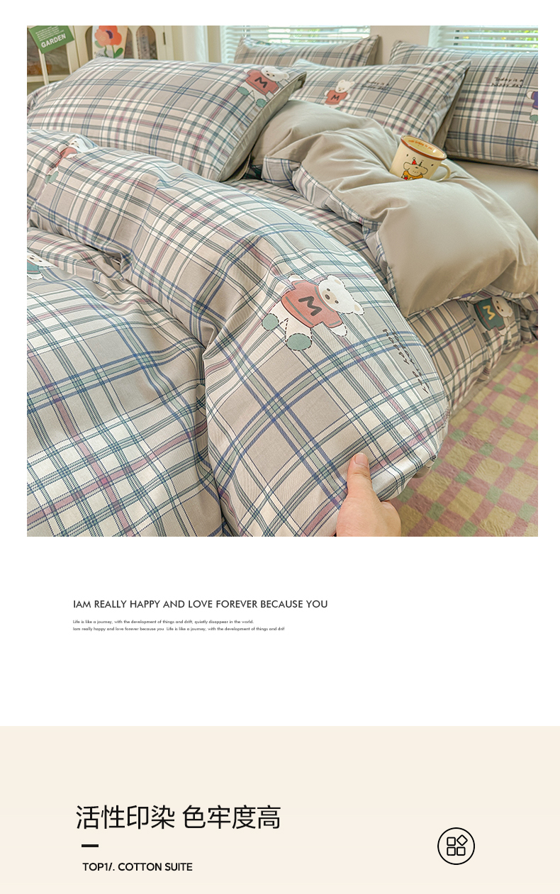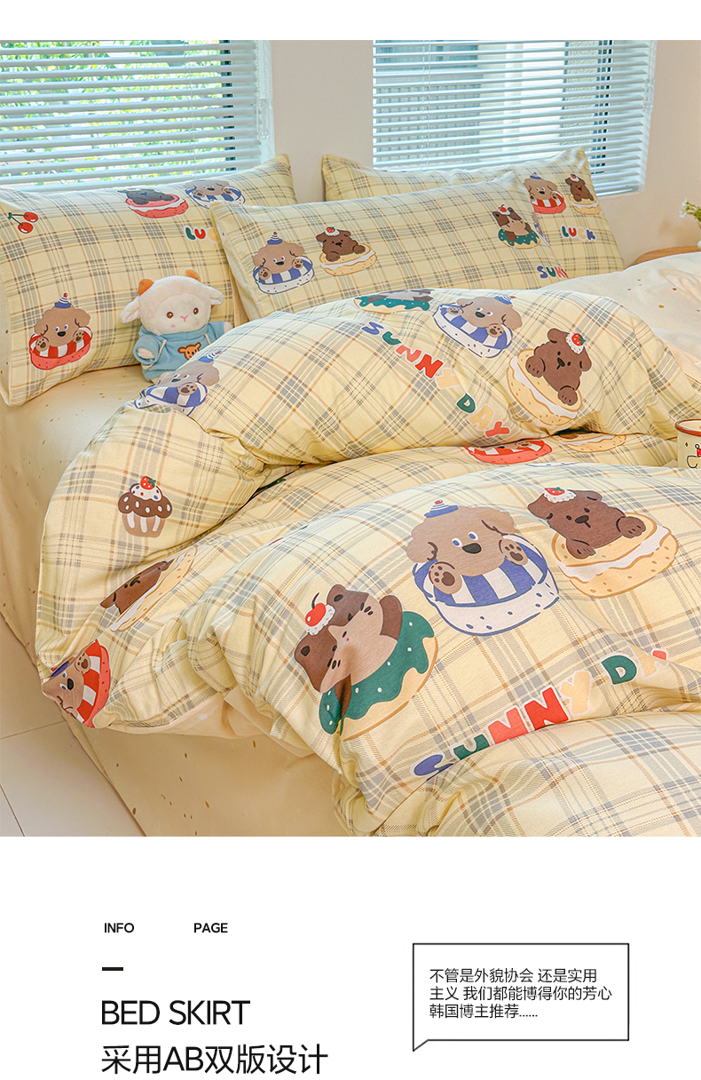 (总)麦田家纺 2025新款A类云感木棉皱皱双层纱印花四件套,春意浓,繁花,花颜,简意,开心小熊,腊肠犬,浪漫花语,免挽星辰,甜心格,小蓝町,樱桃格,紫韵