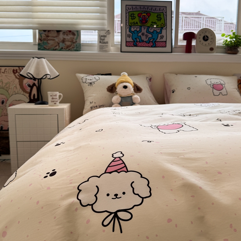 当前位置: 91家纺网 > 商品网购 > 床品套件 > 四件套 > 全棉普通四件套 > 慕尚家纺 2025新款13070全棉纯棉印花四件套 桃心狗