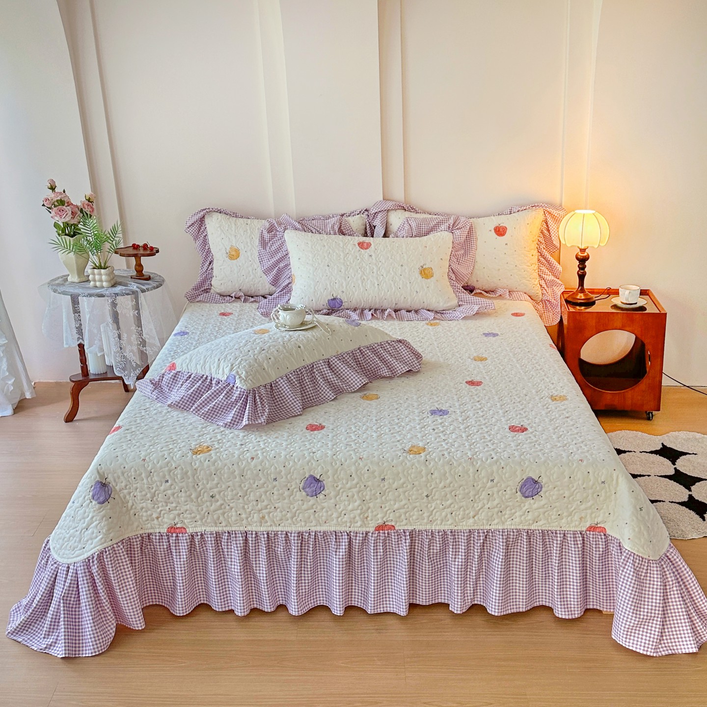 (总)易辰美 2025新款亲肤舒适印花夹棉公主风床盖三件套,艾薇尔-桔,艾维尔-紫,草莓啵啵-粉,草莓啵啵-兰,黑樱桃,煌朝-灰,蔻依娜-粉,榴夏-灰,禧利-兰,一只甜
