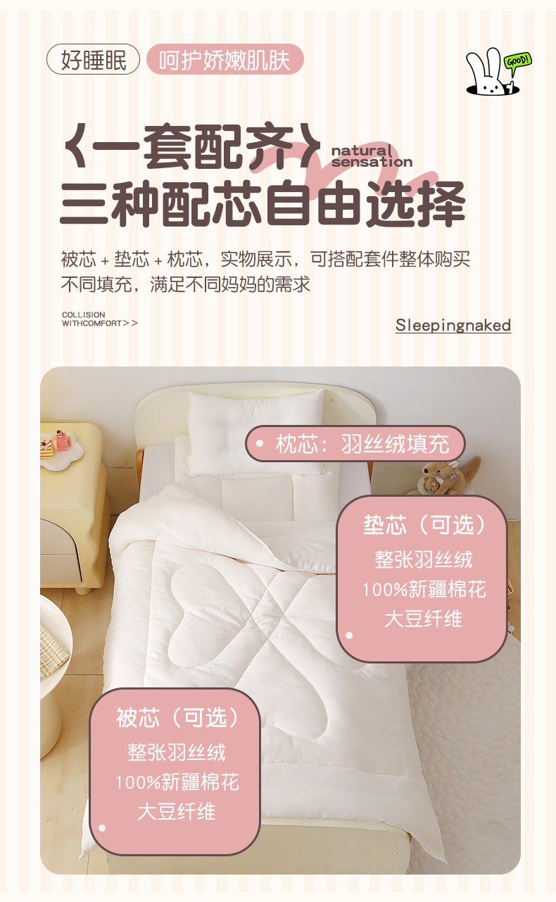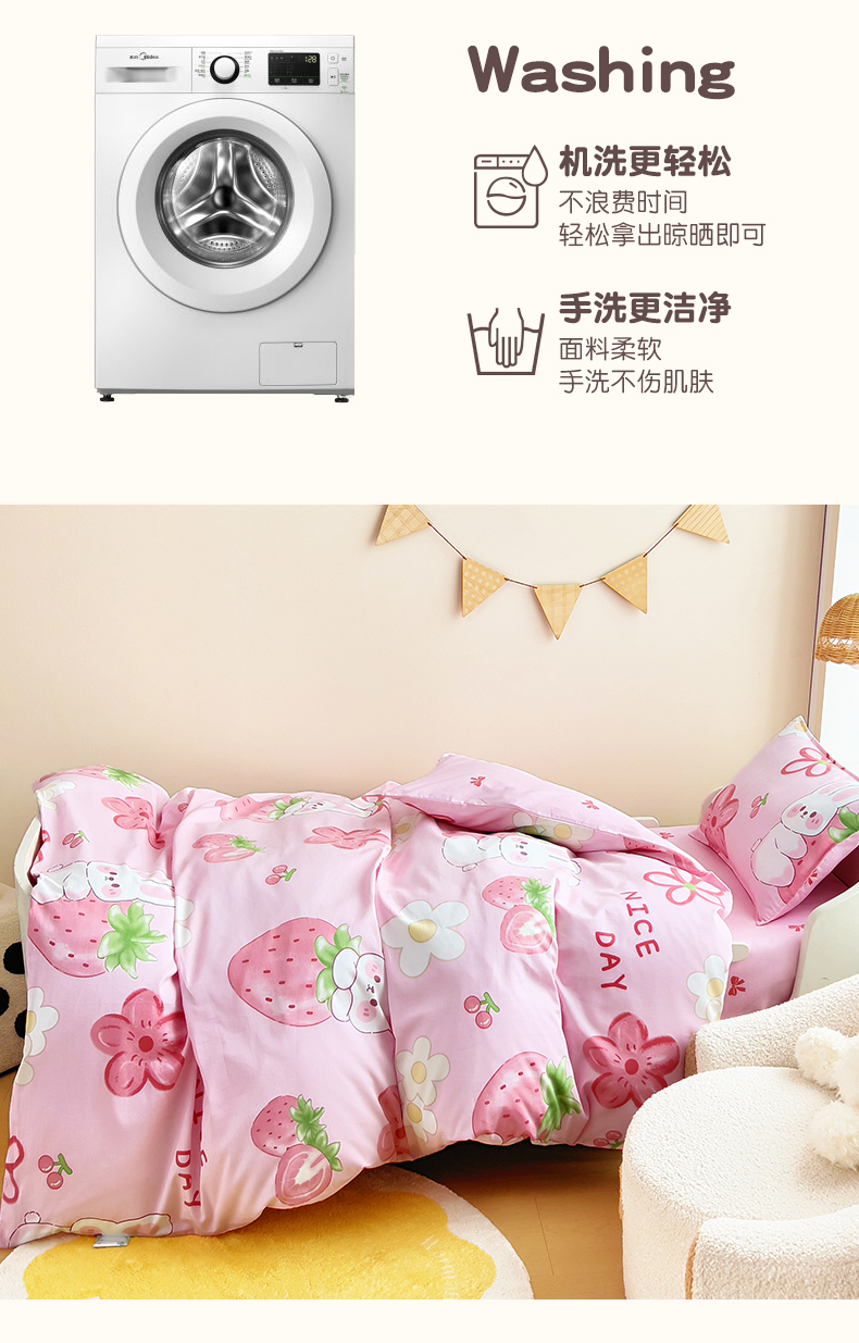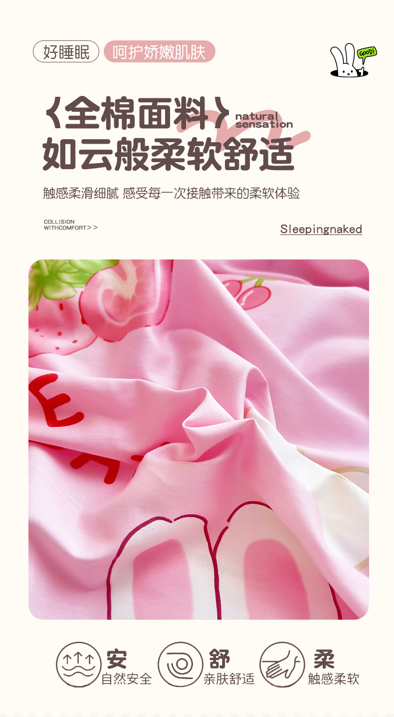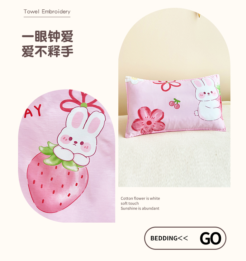 当前位置: 91家纺网 > 商品网购 > 床品套件 > 三件套 > 鱼宝 2025新款全棉幼儿园套件 三件套—童真系列 草莓兔
