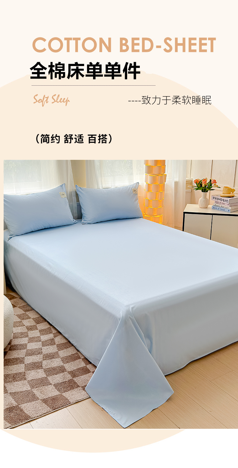 当前位置: 91家纺网 > 商品网购 > 床上用品 > 床单 > 花香四季家纺 2025新款喷气A类全棉13376斜纹纯棉床单单件纯色被单单品四季通用 天真蓝