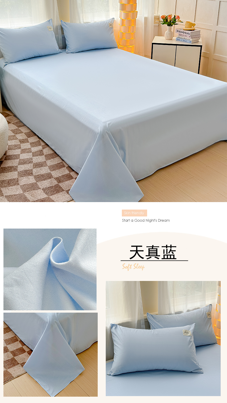 • 91家纺网 家纺一手货源 找家纺 花香四季家纺 2025新款喷气A类全棉13376斜纹纯棉床单单件纯色被单单品四季通用 天真蓝