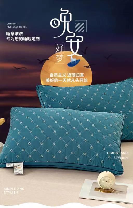 商品名称:永乐枕芯 2025新款绗缝满天星枕芯 蓝色48*74/只