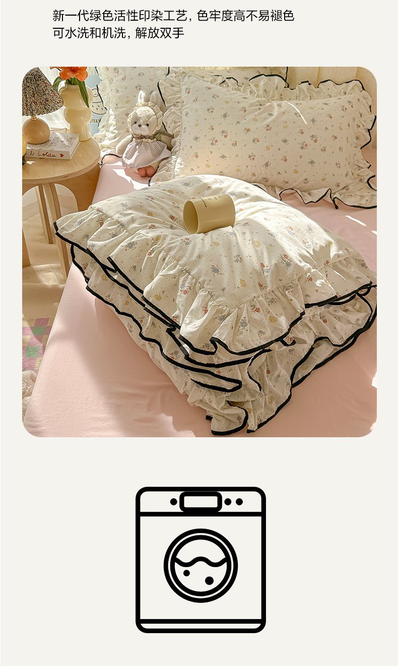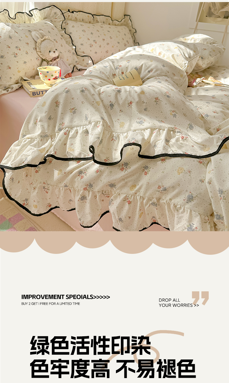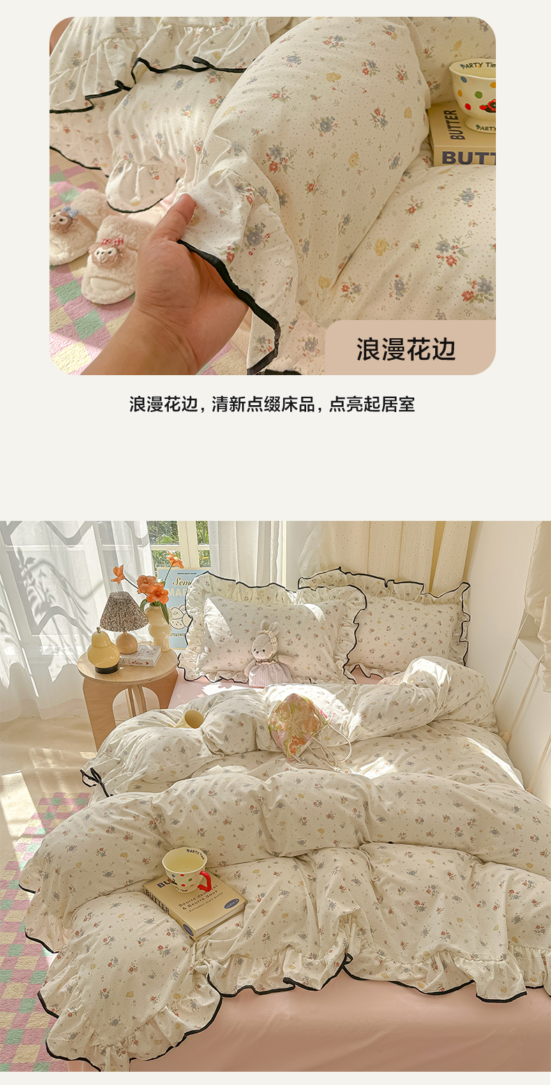 当前位置: 91家纺网 > 商品网购 > 床品套件 > 四件套 > 其它四件套 > 韩巢家纺 2025新款水洗棉大花边被套四件套直播热销款学生宿舍被罩床单三件套(提供卖家秀) 繁花似梦【大花边款】
