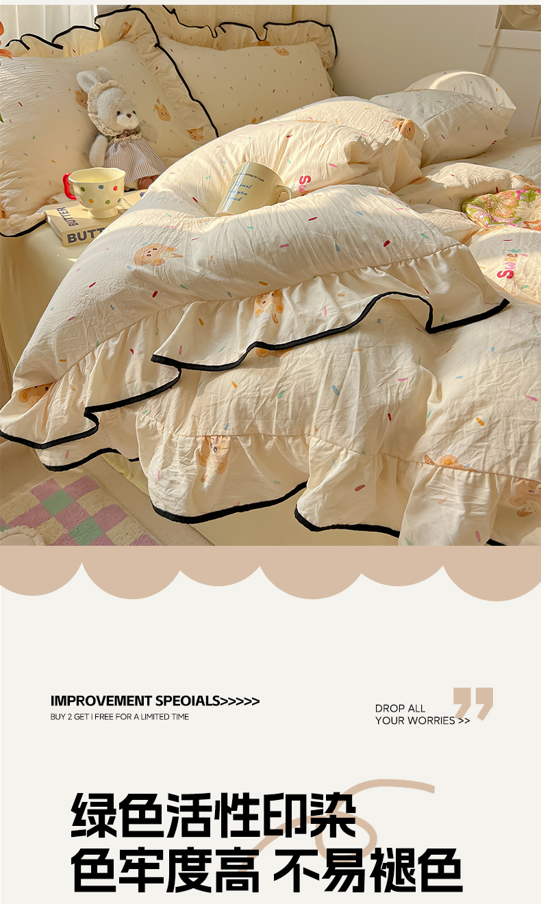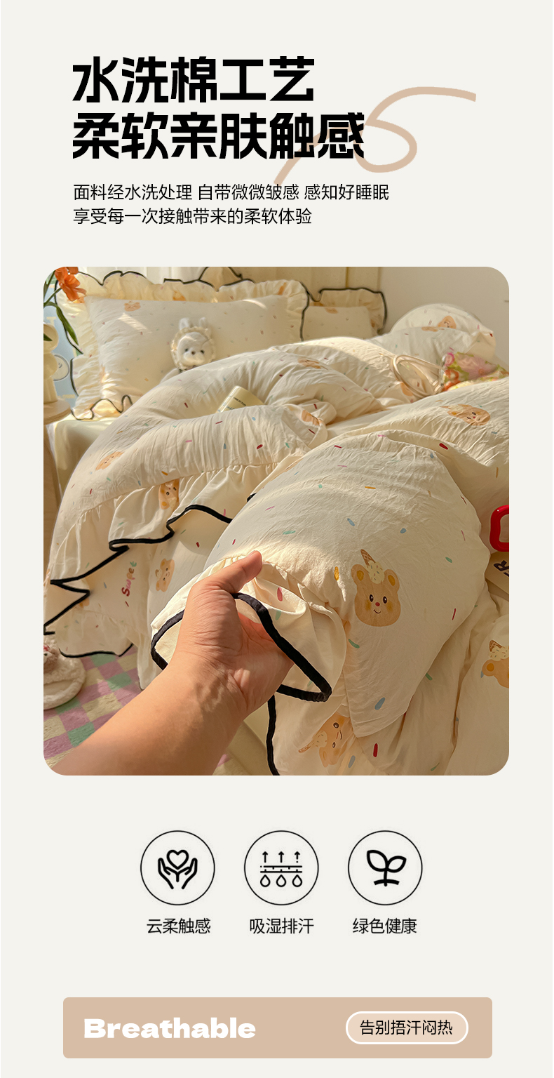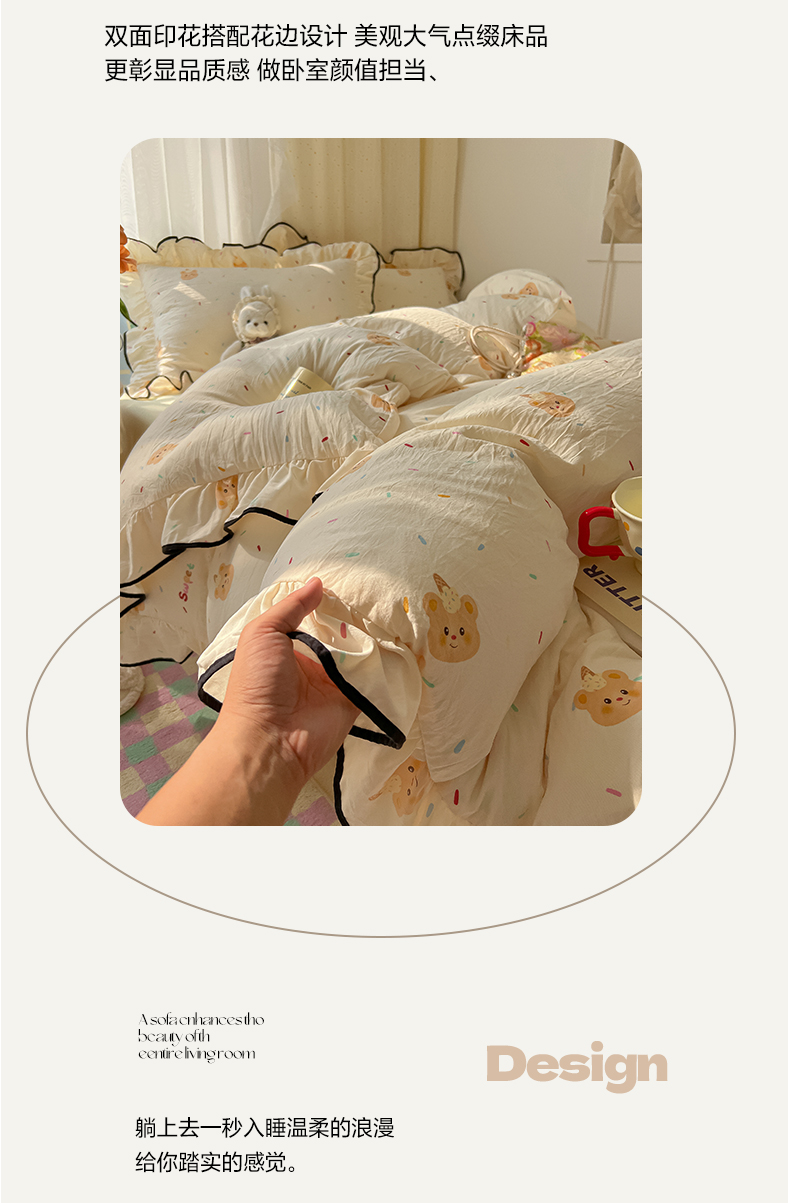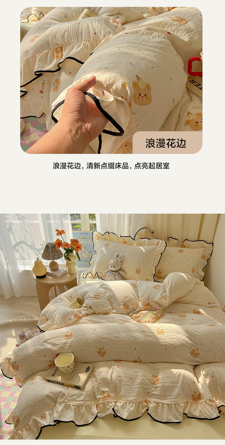 当前位置: 91家纺网 > 商品网购 > 床品套件 > 四件套 > 其它四件套 > 韩巢家纺 2025新款水洗棉大花边被套四件套直播热销款学生宿舍被罩床单三件套(提供卖家秀) 小熊冰淇淋【大花边款】