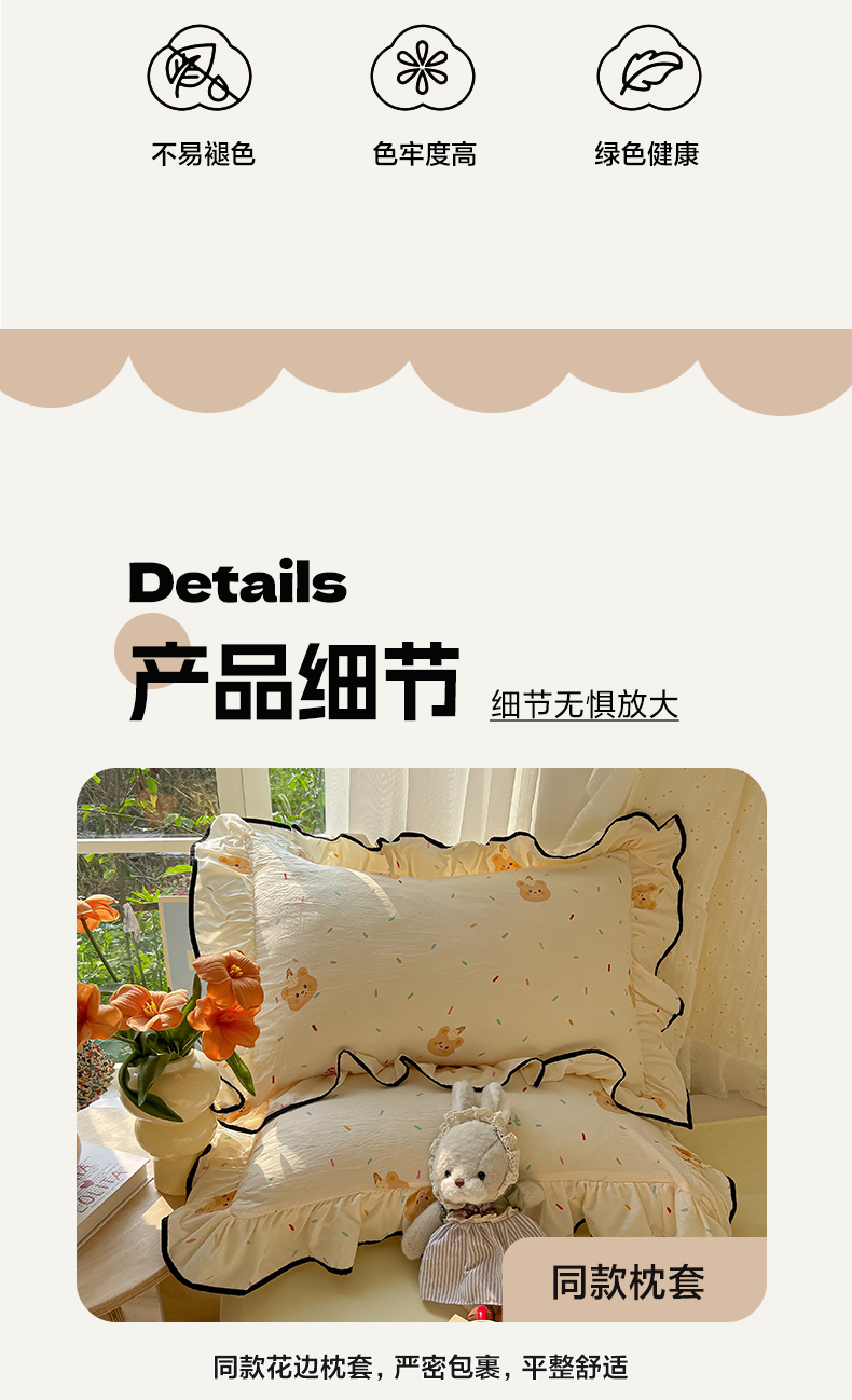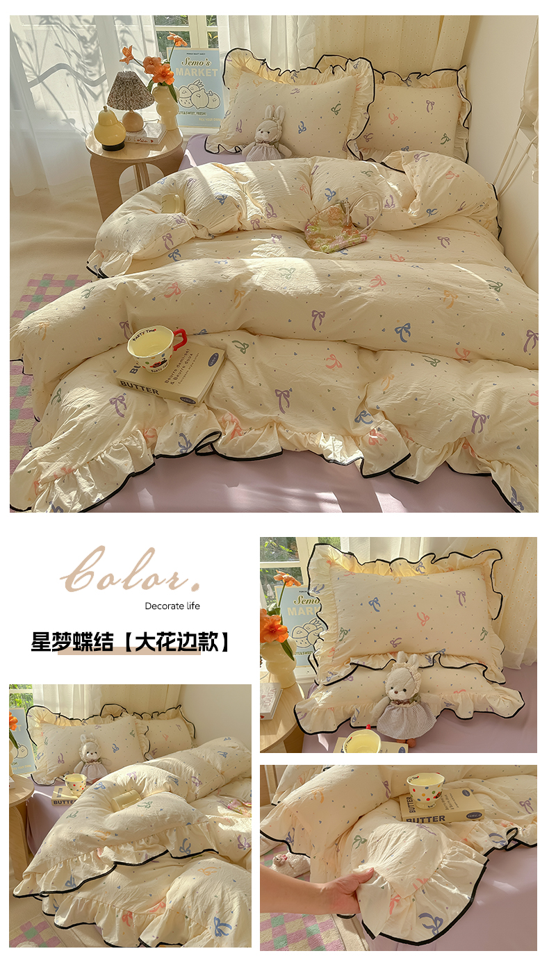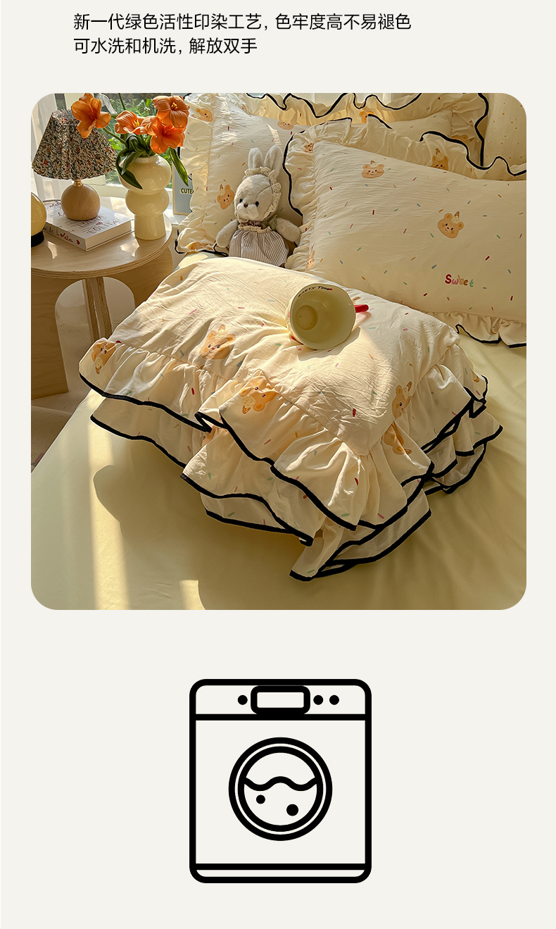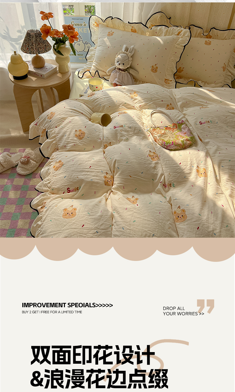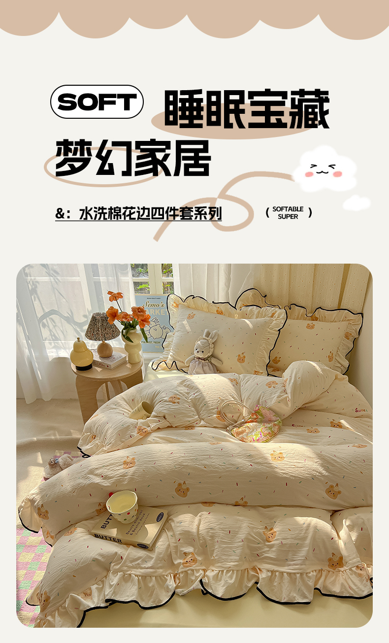 当前位置: 91家纺网 > 商品网购 > 床品套件 > 四件套 > 其它四件套 > 韩巢家纺 2025新款水洗棉大花边被套四件套直播热销款学生宿舍被罩床单三件套(提供卖家秀) 小熊冰淇淋【大花边款】