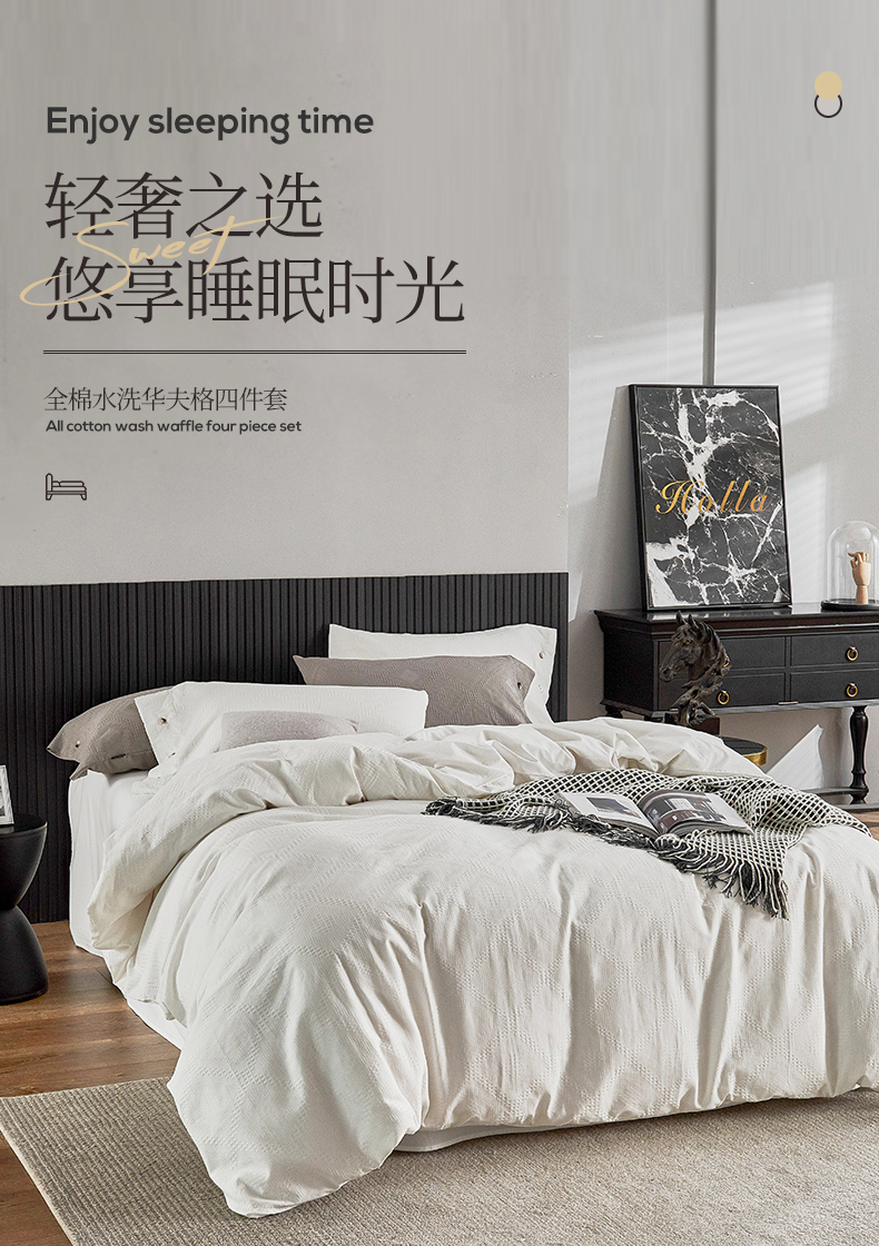 当前位置: 91家纺网 > 商品网购 > 床品套件 > 四件套 > 全棉普通四件套 > 贝尔 PELLHOME 简约华夫格北欧纯棉水洗棉床上用品四件(春节不打烊)(可抖音代发) 本白