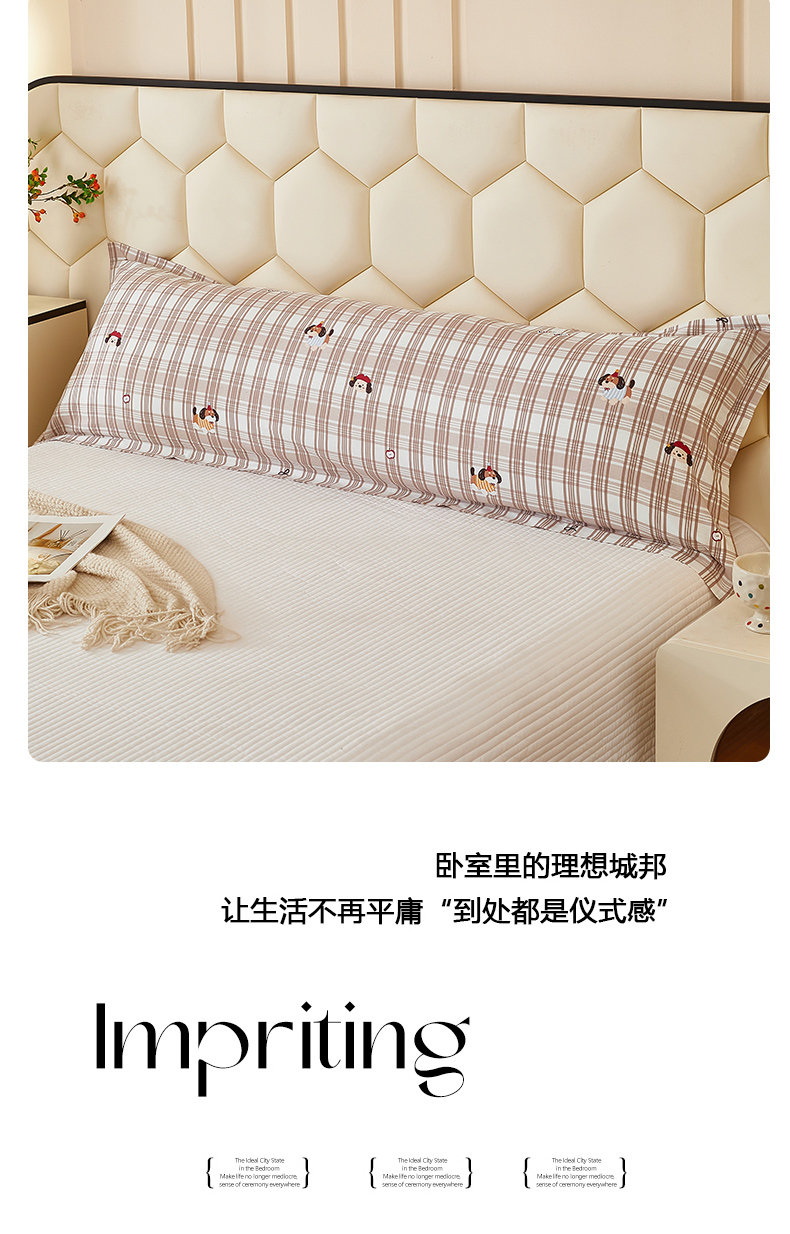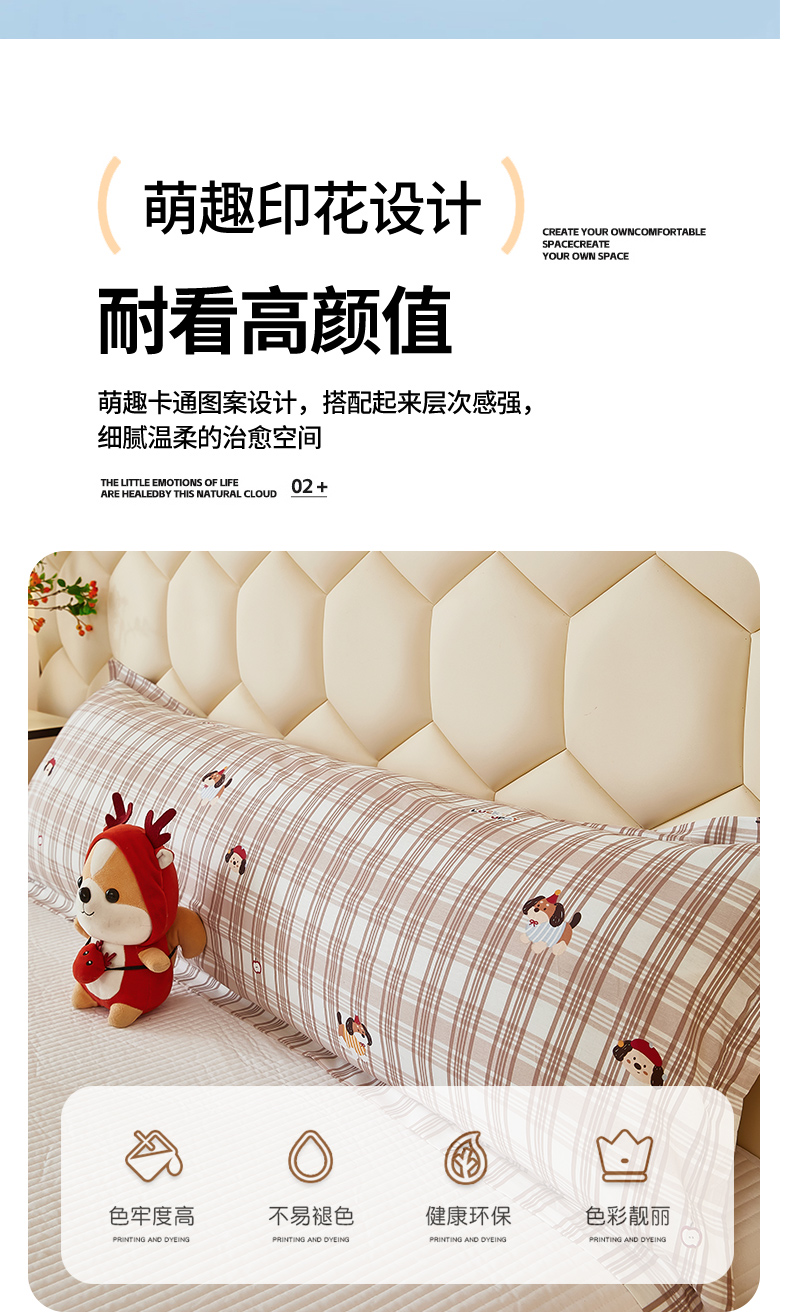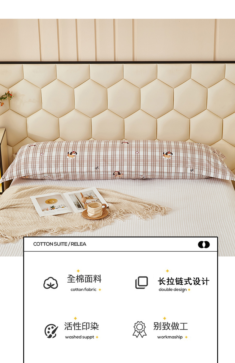 商品名称:三盛源 2025新款全棉纯棉双人长枕套1.5米成人纯棉长枕头套1.2卡通1.8m长款加长 可爱狗-咖