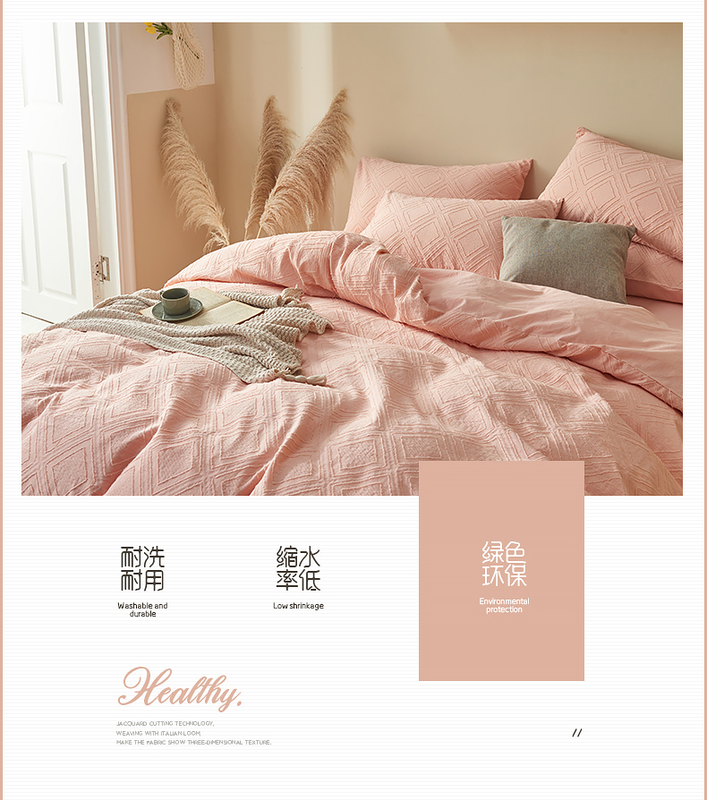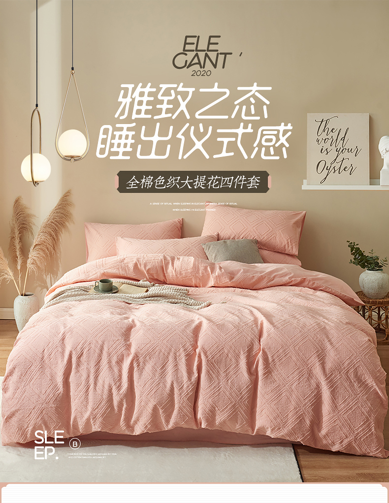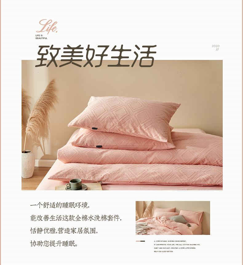 当前位置: 91家纺网 > 商品网购 > 床品套件 > 四件套 > 全棉普通四件套 > 贝尔 PELLHOME 日式北欧民宿大剪花水洗棉全棉四件套场景一(春节不打烊)(可抖音代发) 心粉
