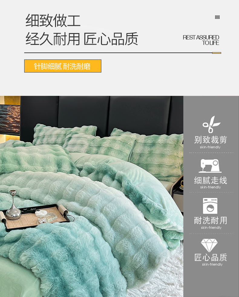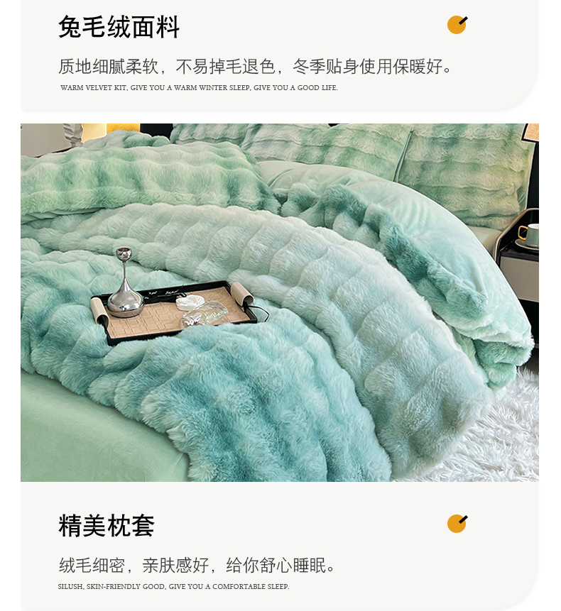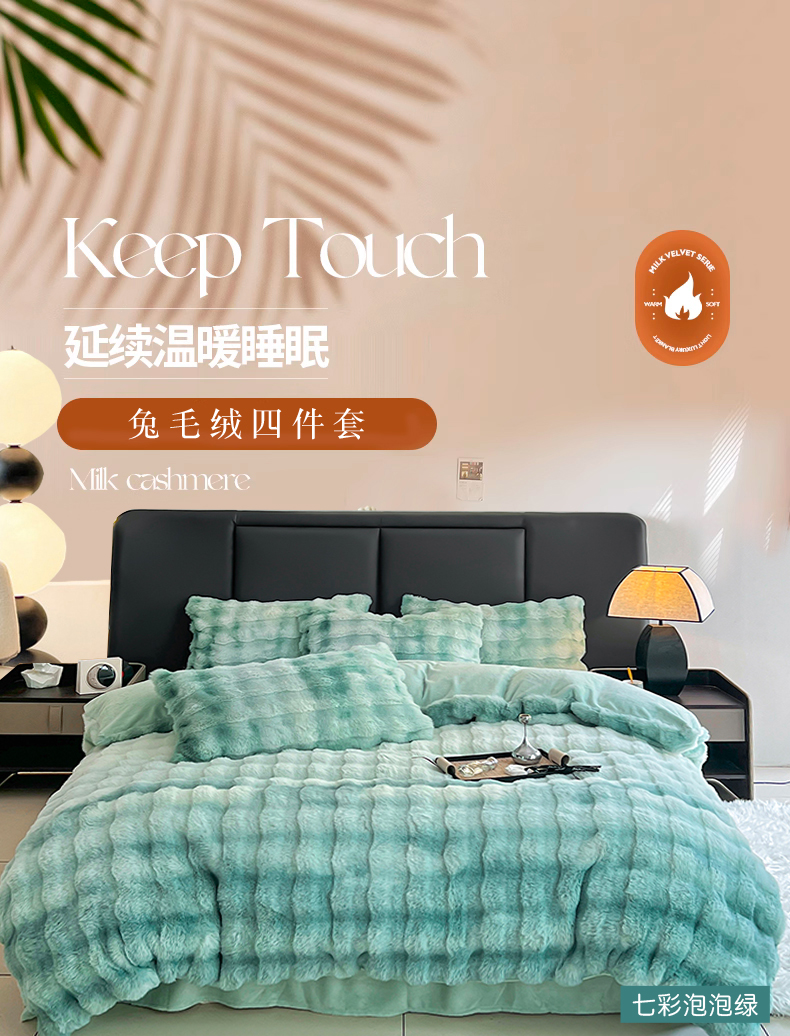 商品名称:金爱家 2025新品全消光牛奶绒A类纯色獭兔毛绒立体牛奶绒四件套 七彩泡泡绿