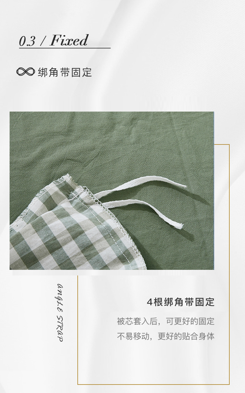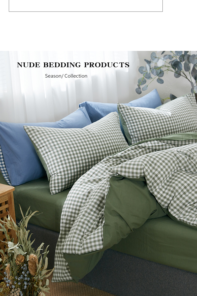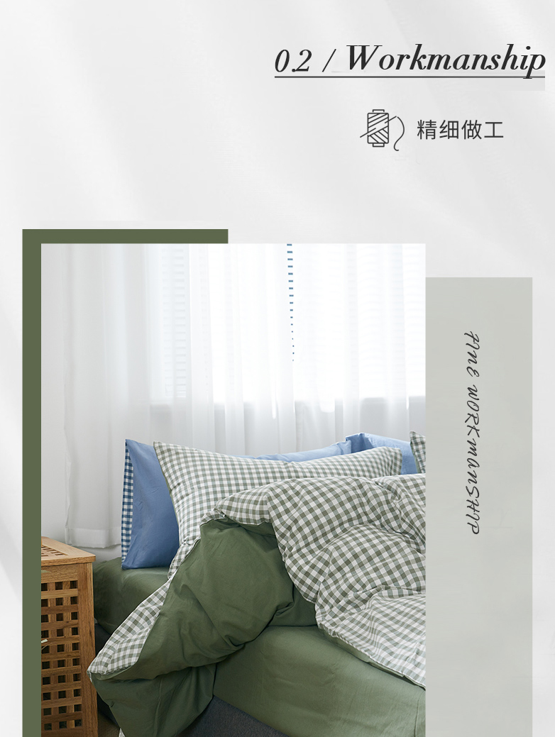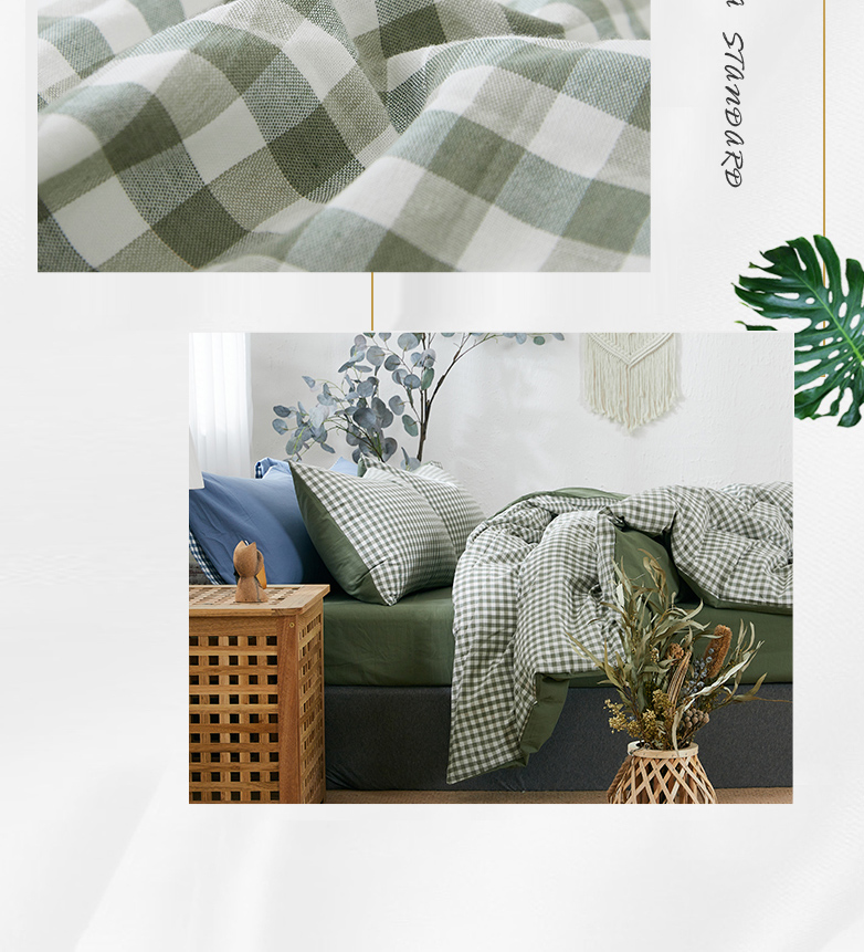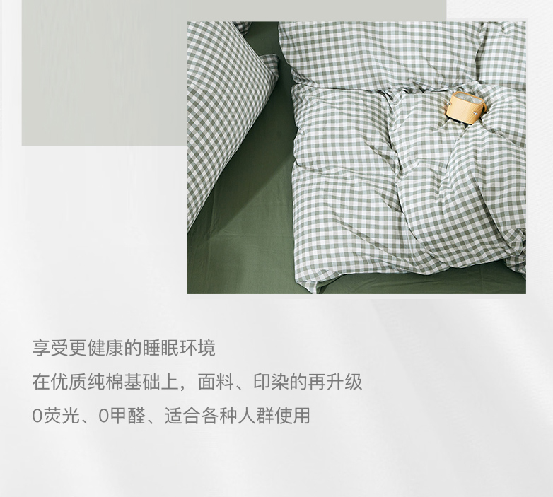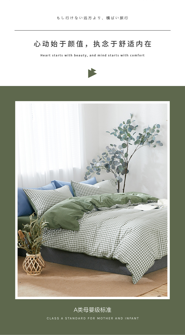 商品名称:贝尔 PELLHOME 简约全棉纯棉色织水洗棉1.51.8三四件套(春节不打烊)(可抖音代发) 绿-小格