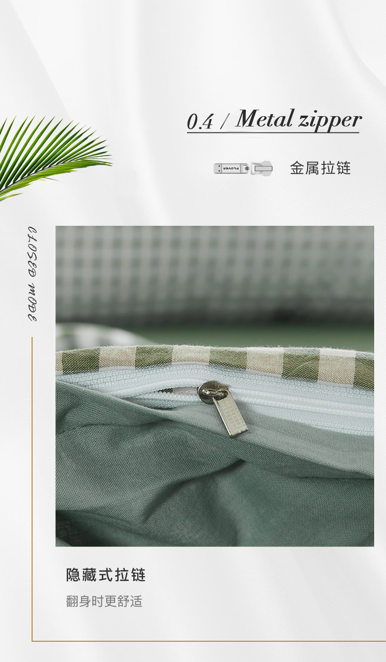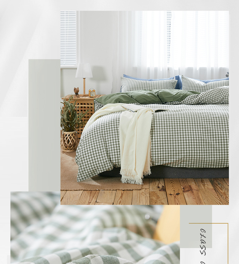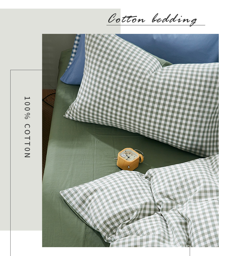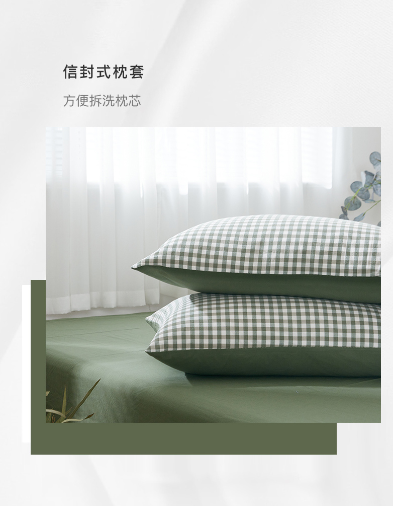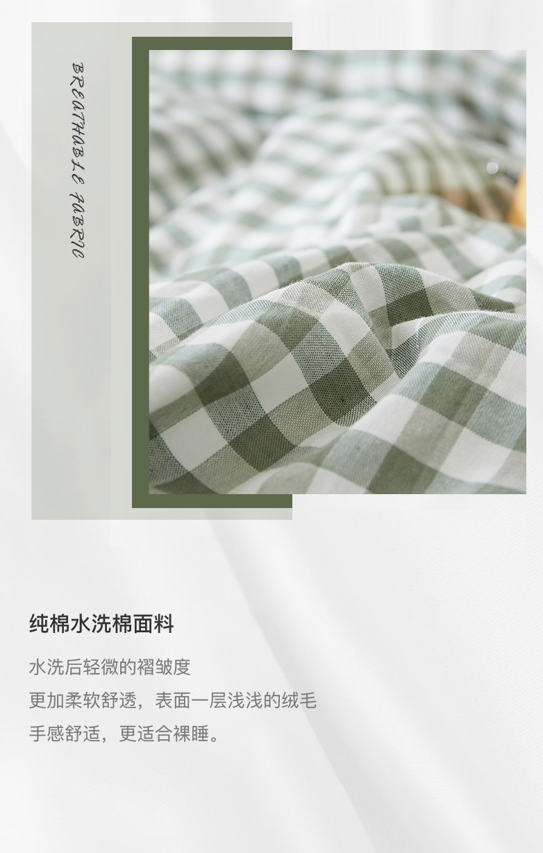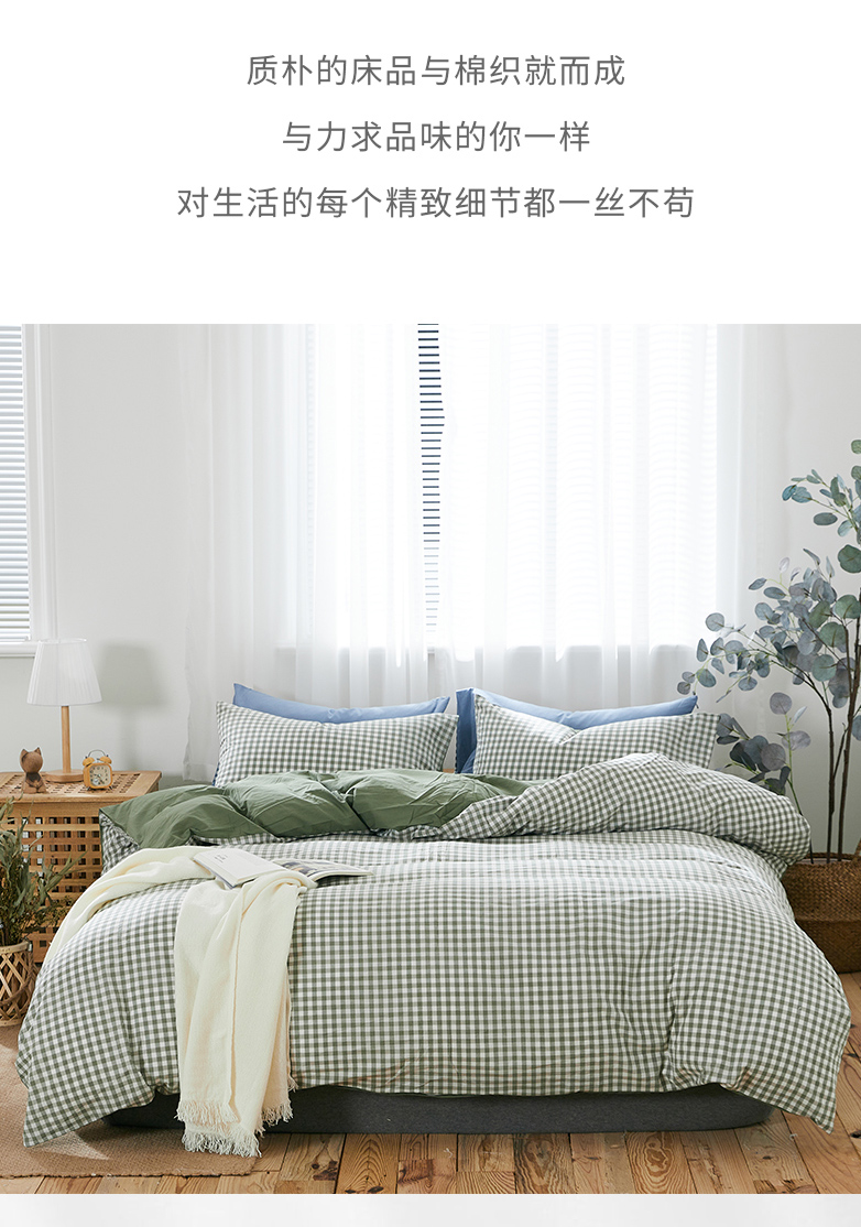 贝尔 PELLHOME 简约全棉纯棉色织水洗棉1.51.8三四件套(春节不打烊)(可抖音代发) 绿-小格