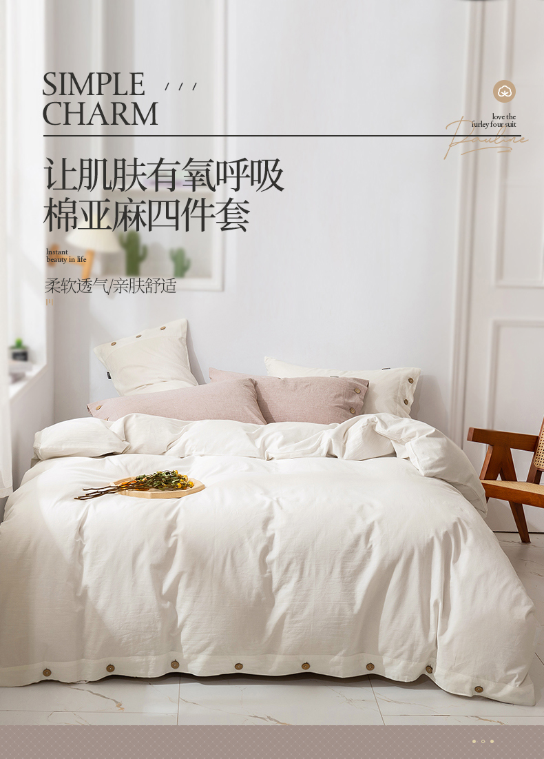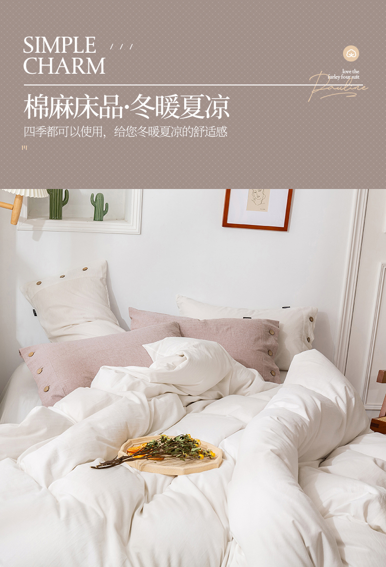当前位置: 91家纺网 > 商品网购 > 床品套件 > 四件套 > 其它四件套 > 贝尔 PELLHOME 简约纯色纽扣棉麻亚麻床单被套四件套(春节不打烊)(可抖音代发) 象牙白