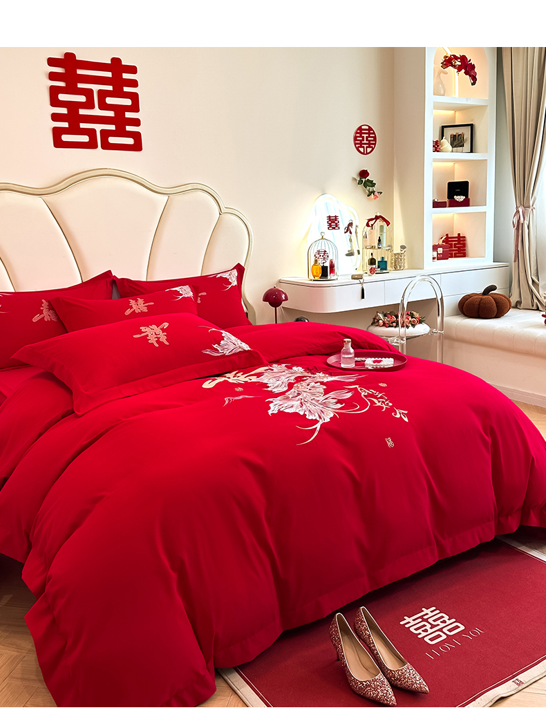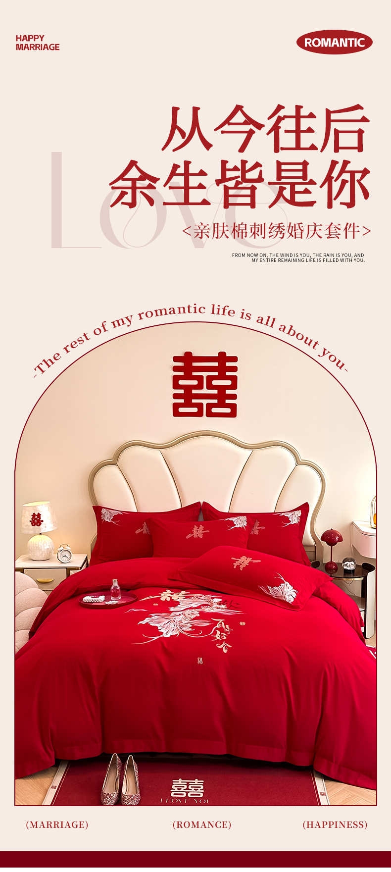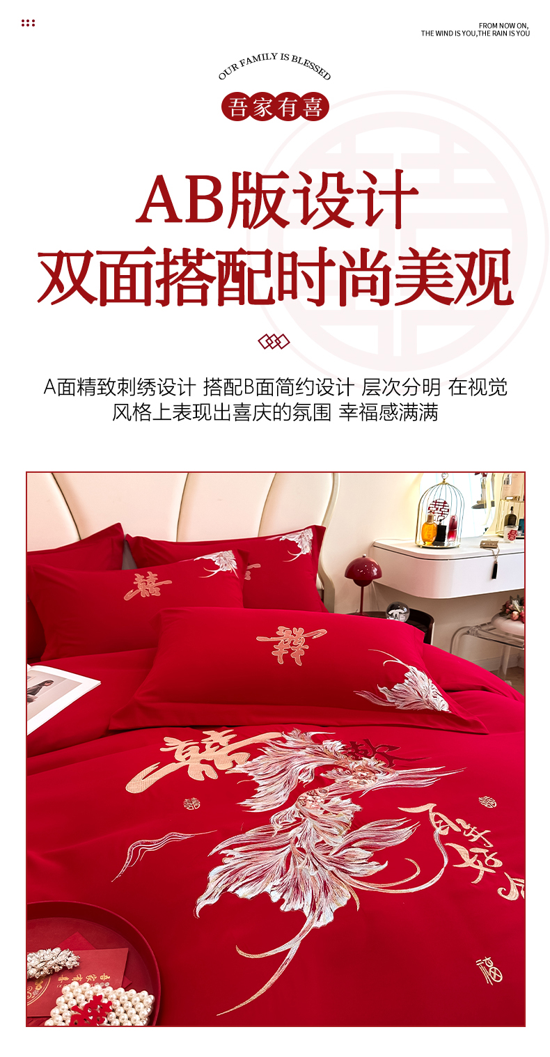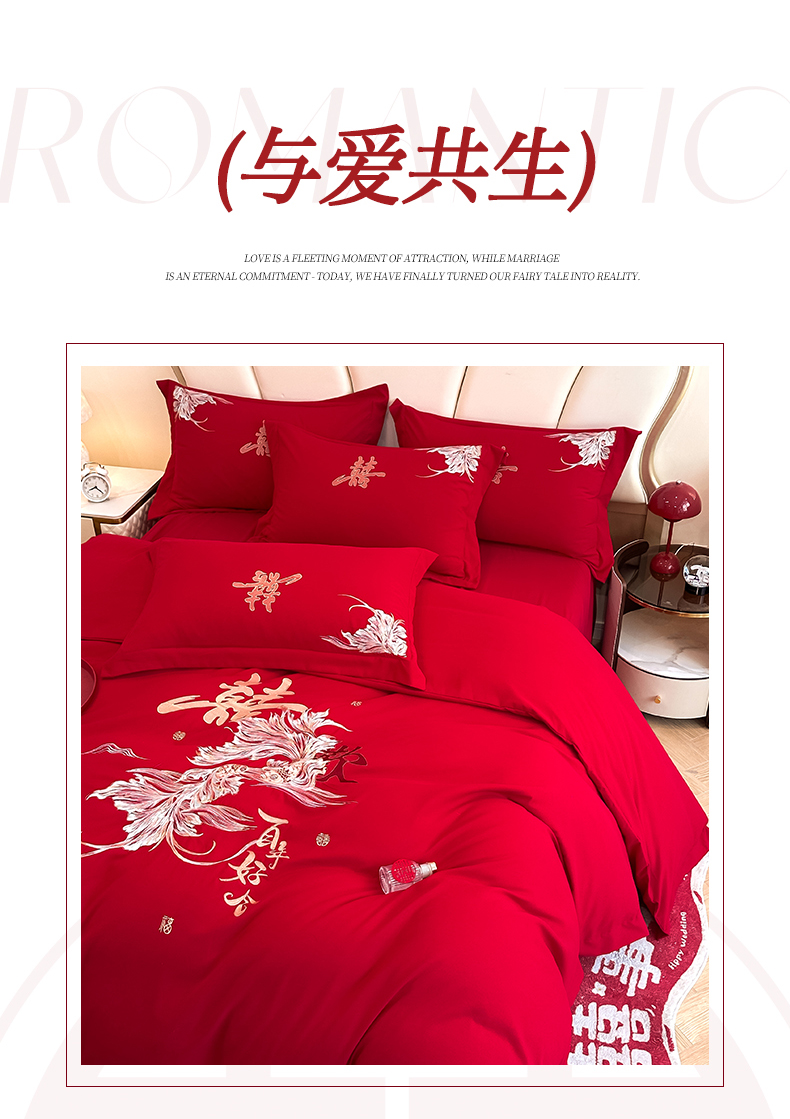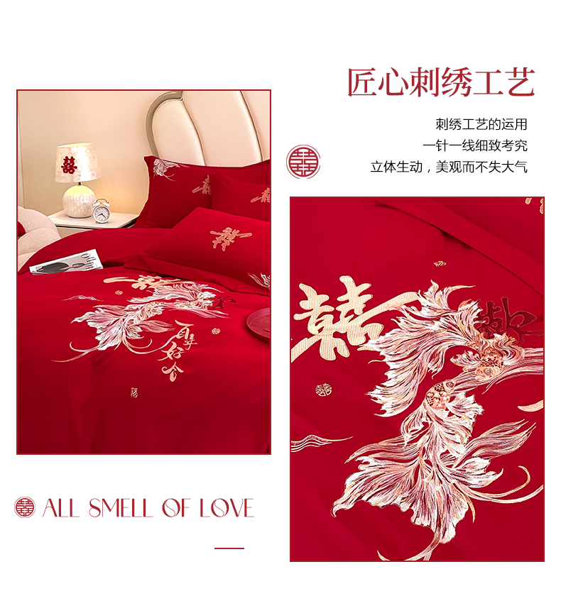 (总)火麒麟家纺 2025新款亲肤棉婚庆刺绣四件套,爱意满满,百年之好,蝶恋花,欢喜,锦上添花,锦有你,龙飞凤舞,龙凤祥云,天赐良缘,吾家有喜,一见钟情,永结同心