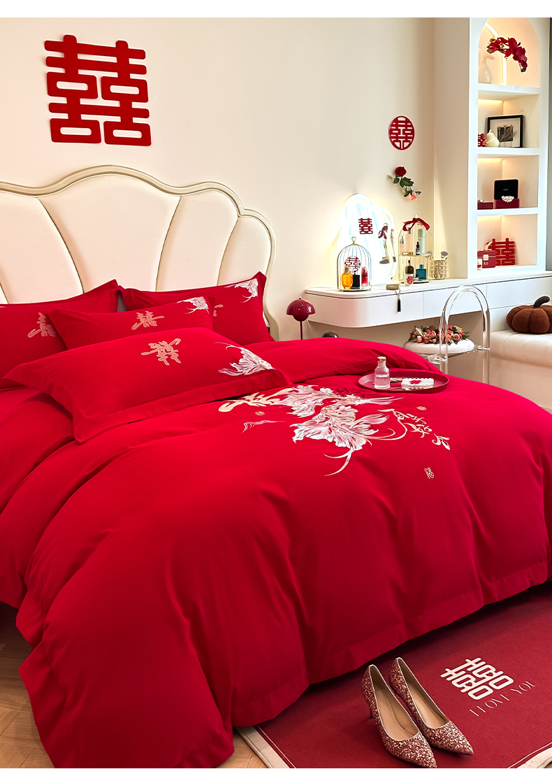 火麒麟家纺 2025新款亲肤棉婚庆刺绣四件套 锦有你