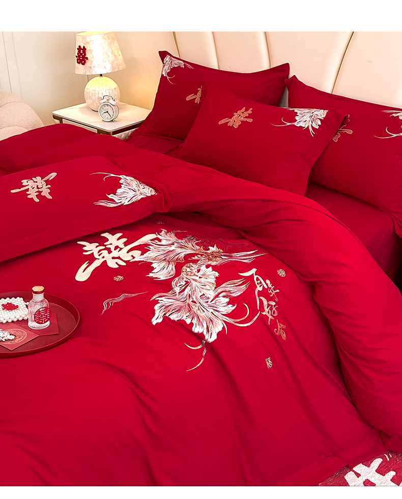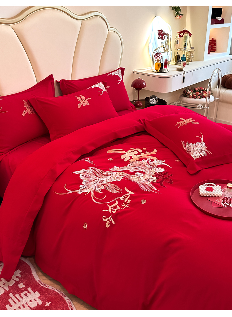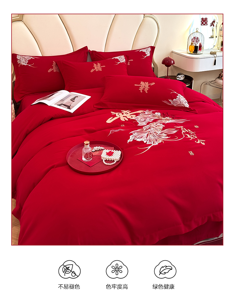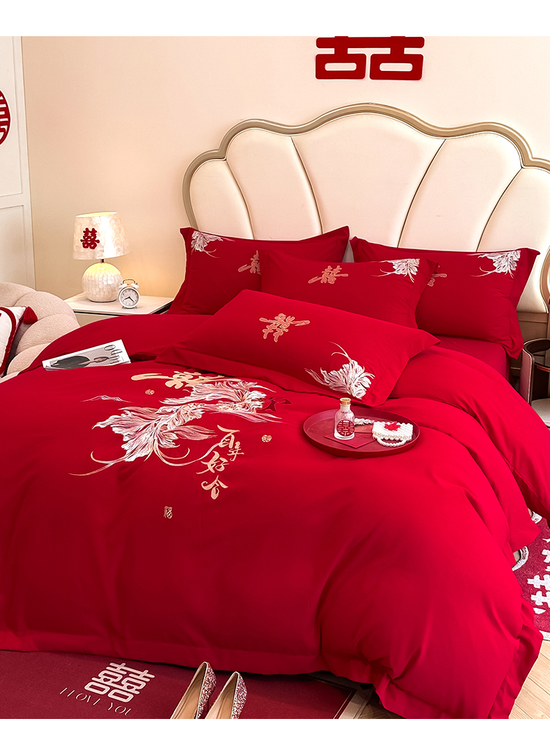 商品名称:火麒麟家纺 2025新款亲肤棉婚庆刺绣四件套 锦有你