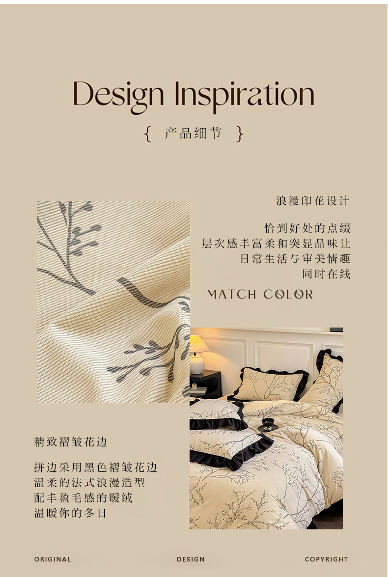 当前位置: 91家纺网 > 商品网购 > 床品套件 > 四件套 > 牛奶绒四件套 > 宅家居 2025新款轻法式小香风灯芯绒提花立体韩版花边牛奶绒四件套-实拍风 花枝