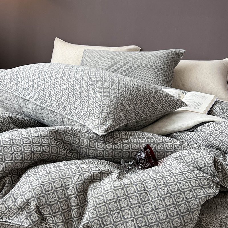 贝尔 2025新款棉麻色织提花双层纱简单款四件套 简单款-繁花