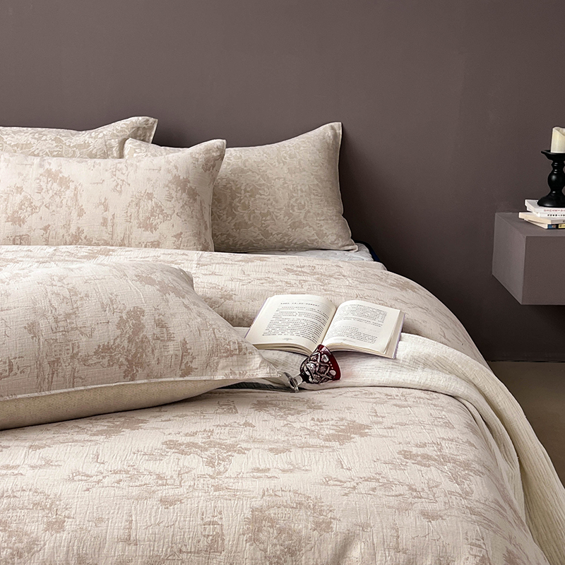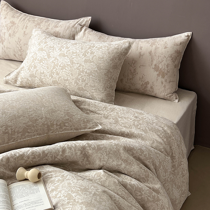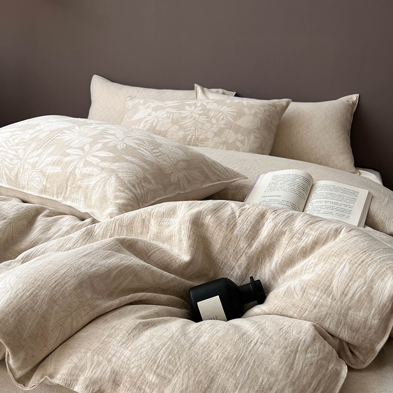 商品名称:贝尔 2025新款棉麻色织提花双层纱简单款四件套 简单款-繁花