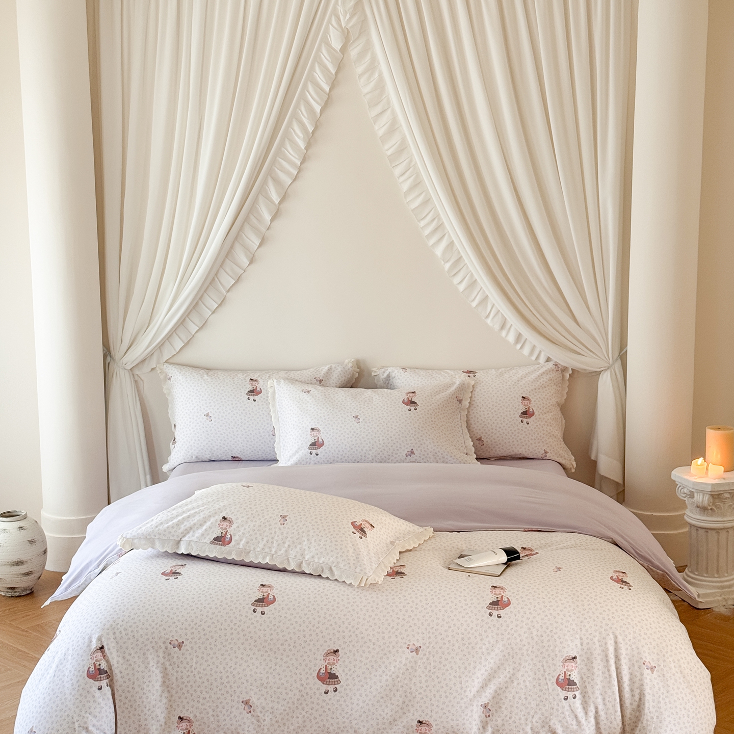 商品名称:(总)于果 2025新款全棉纯棉生态磨毛花边款四件套