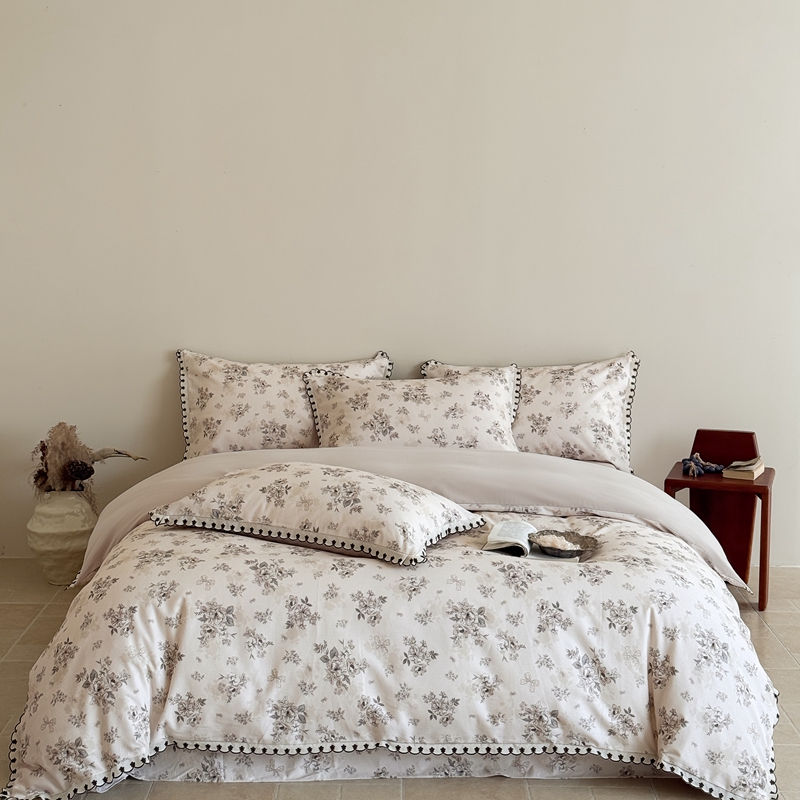 于果 2025新款全棉纯棉生态磨毛花边款四件套 晚风集
