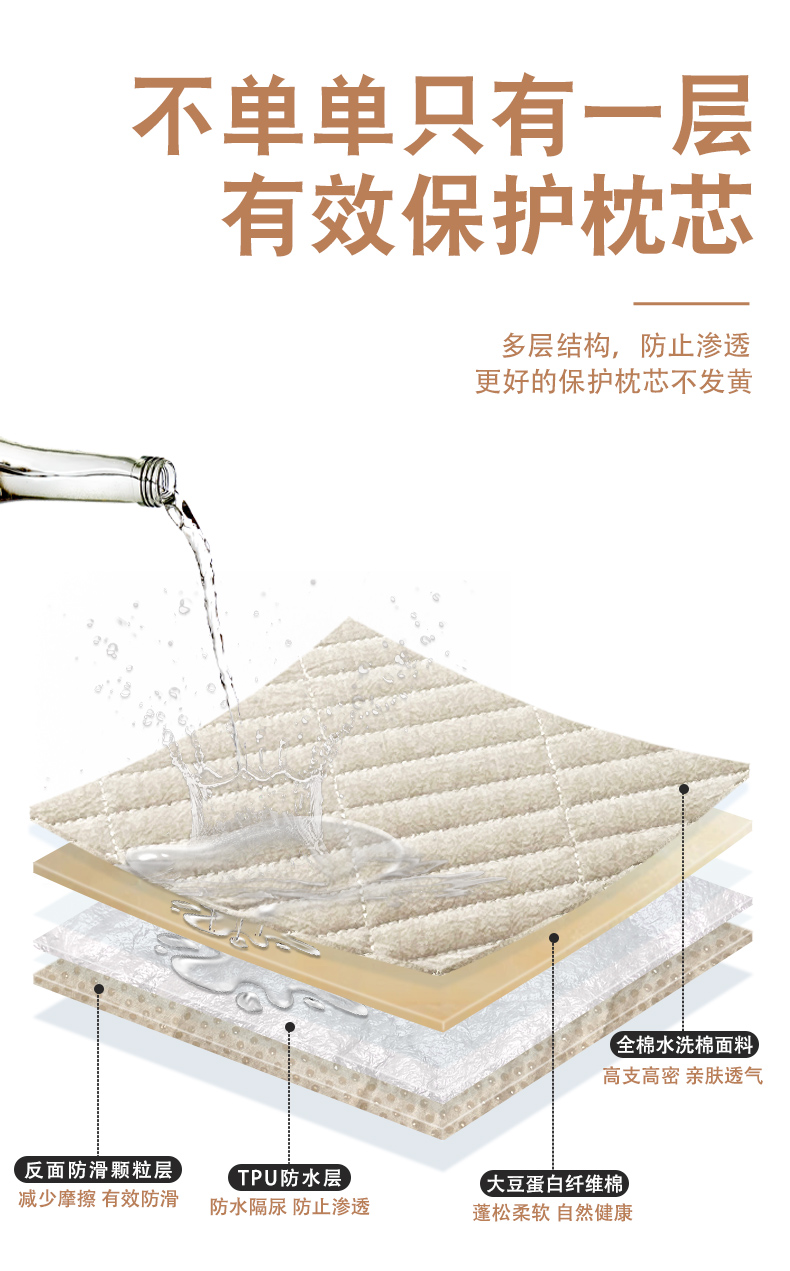 商品名称:拾小柒 2025新款纯色全棉色织水洗棉防水防头油枕套 焦糖色
