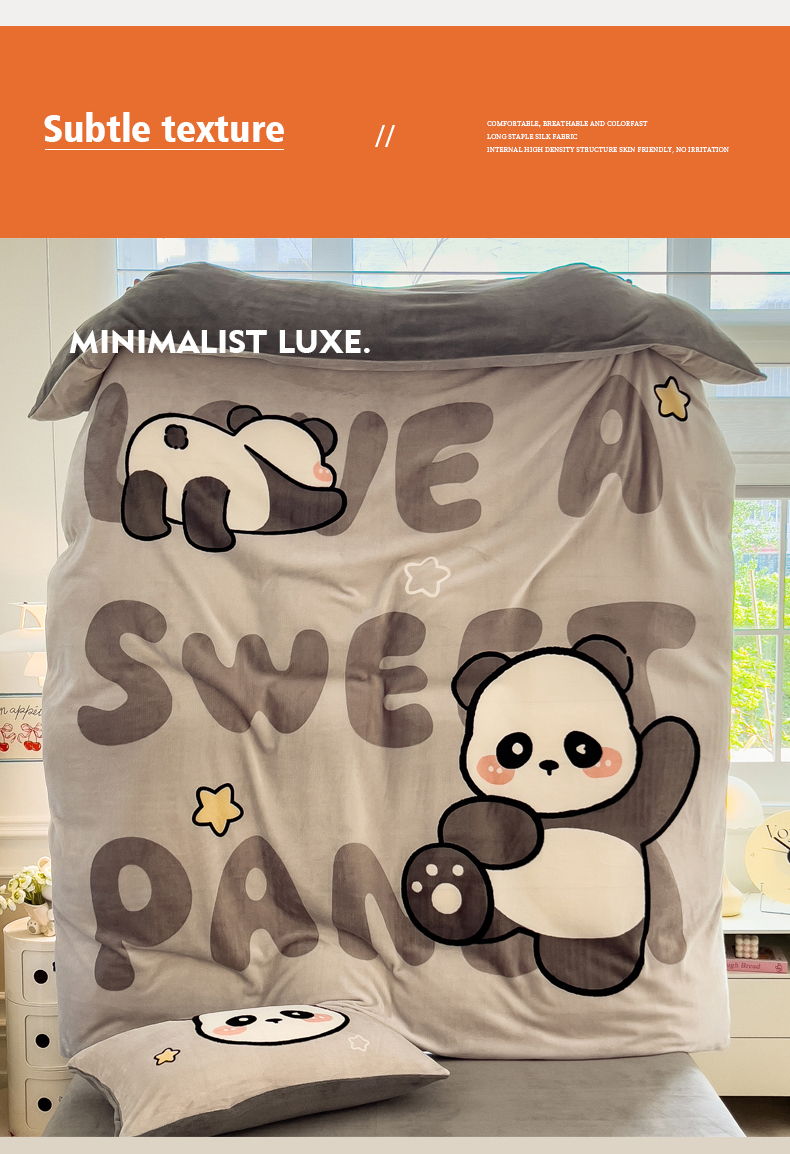 当前位置: 91家纺网 > 商品网购 > 床品套件 > 四件套 > 牛奶绒四件套 > 丝羽坊 2025新款A类大版牛奶绒印花四件套 萌萌熊猫