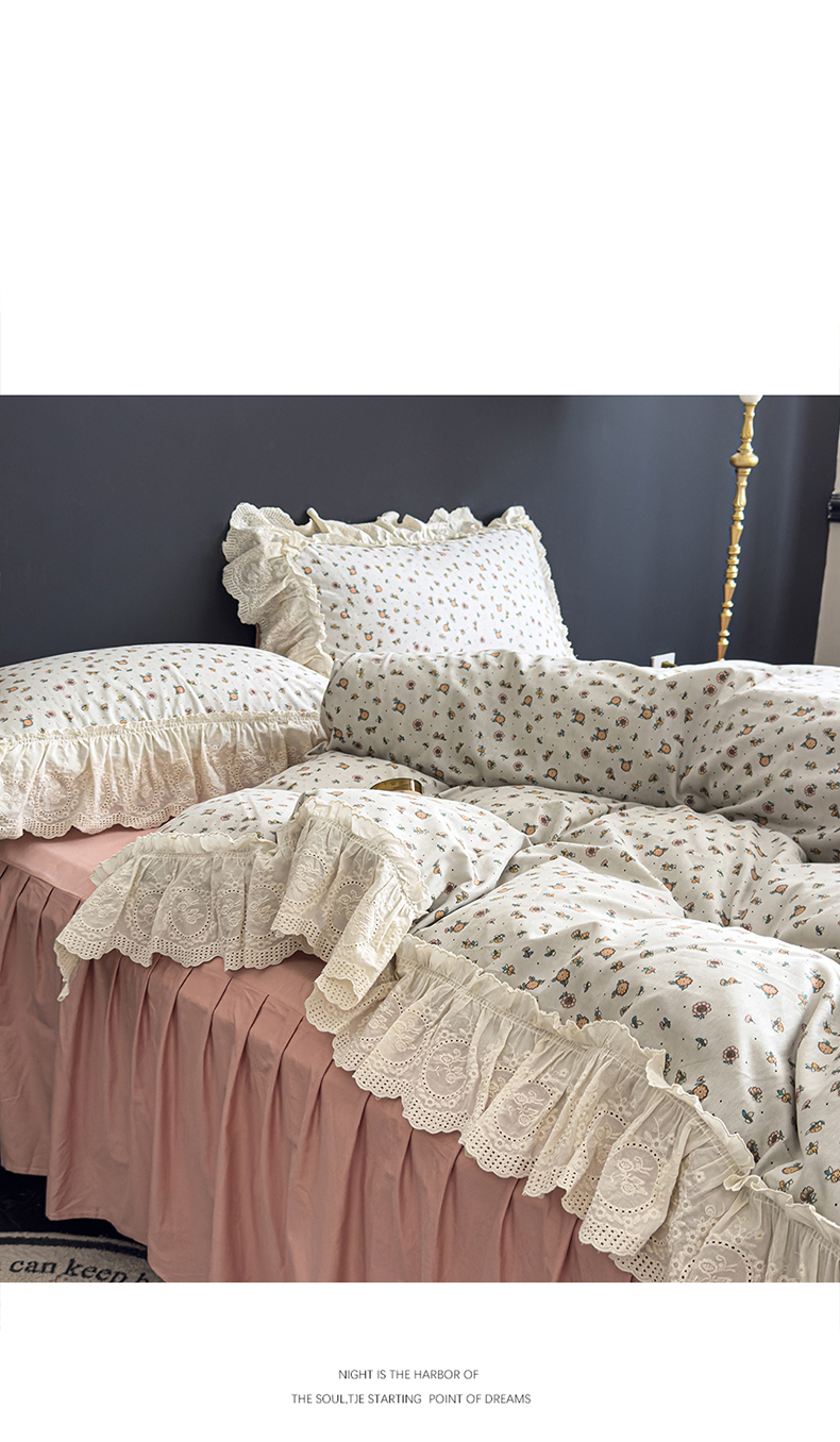 (总)狂想家 2025高定蕾丝糯小棉安妮系列四件套,茶花粉,蜜桃粉,奶昔白,晴空兰