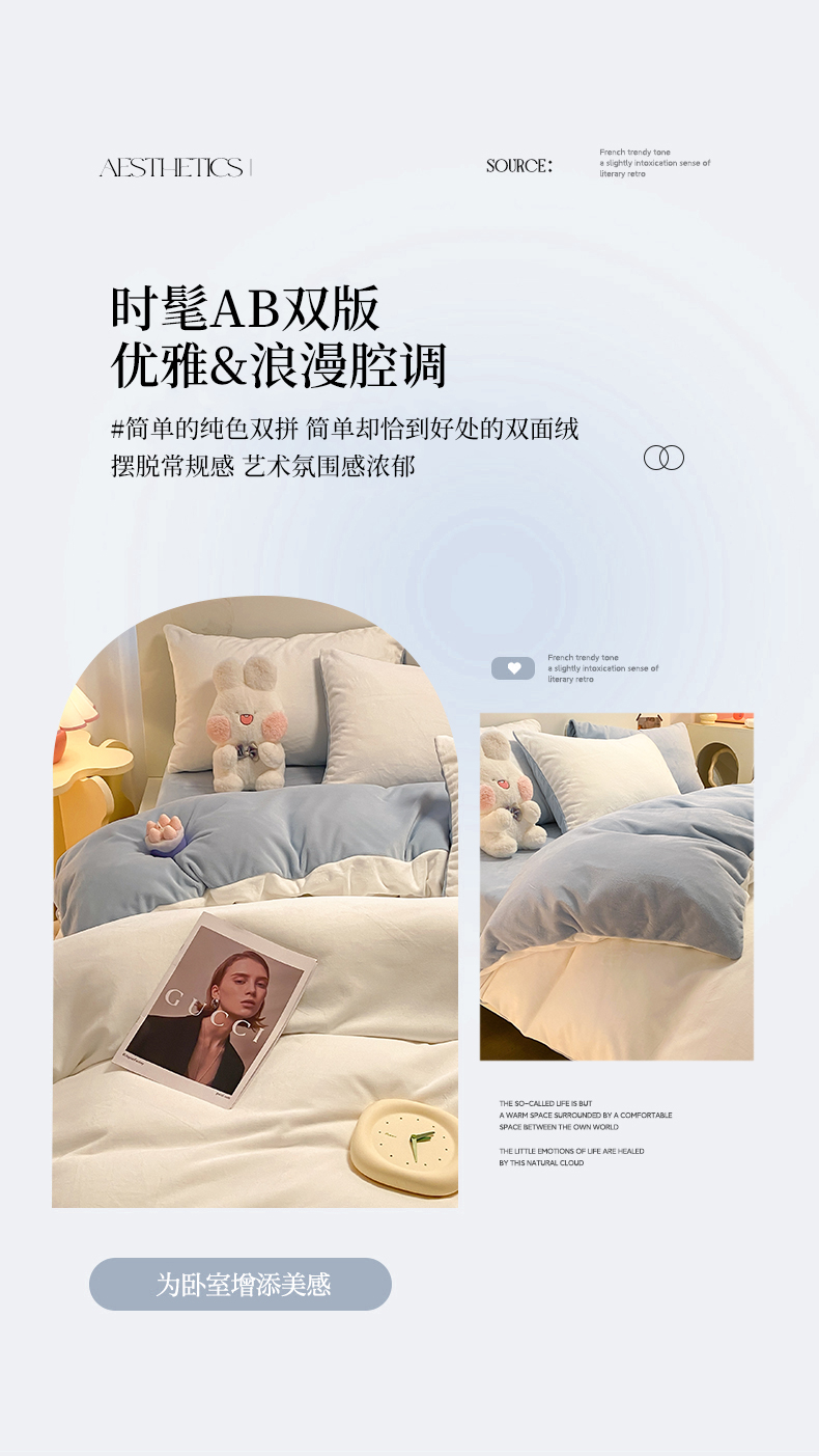 当前位置: 91家纺网 > 商品网购 > 床品套件 > 四件套 > 牛奶绒四件套 > 顺兴家居 2025新款简约纯色双拼牛奶绒四件套(风格二) 奶白+婴儿蓝