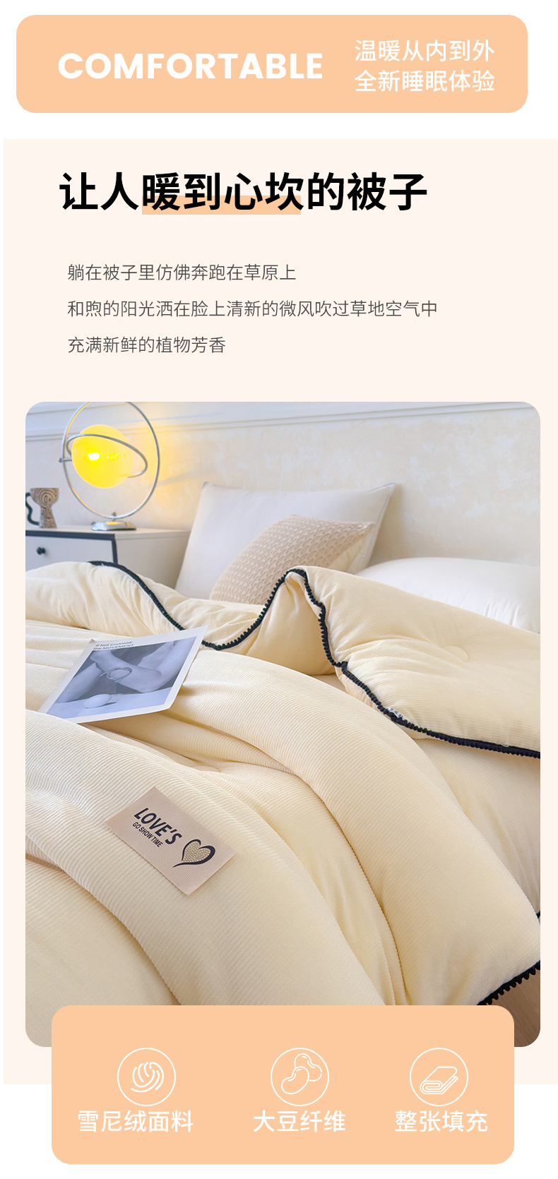 • 91家纺网 家纺一手货源 找家纺 蓝冰家纺 2025新款保暖雪尼绒大豆被冬被被子被芯 典雅灰