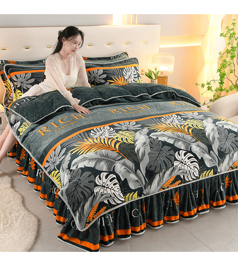 贝诗梦 2025直播8.5斤高克重牛奶绒金貂法莱绒保暖四件套 一叶知秋,一叶知秋