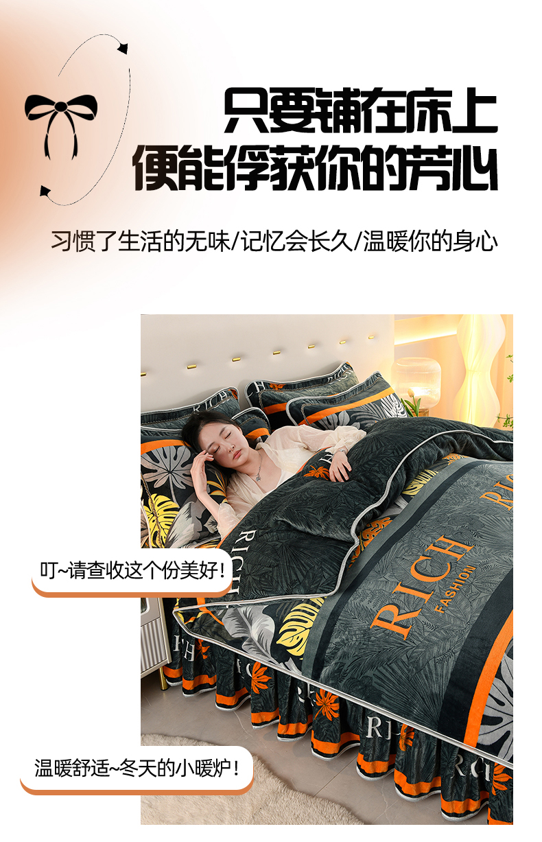 贝诗梦 2025直播8.5斤高克重牛奶绒金貂法莱绒保暖四件套 甜蜜佳缘,甜蜜佳缘