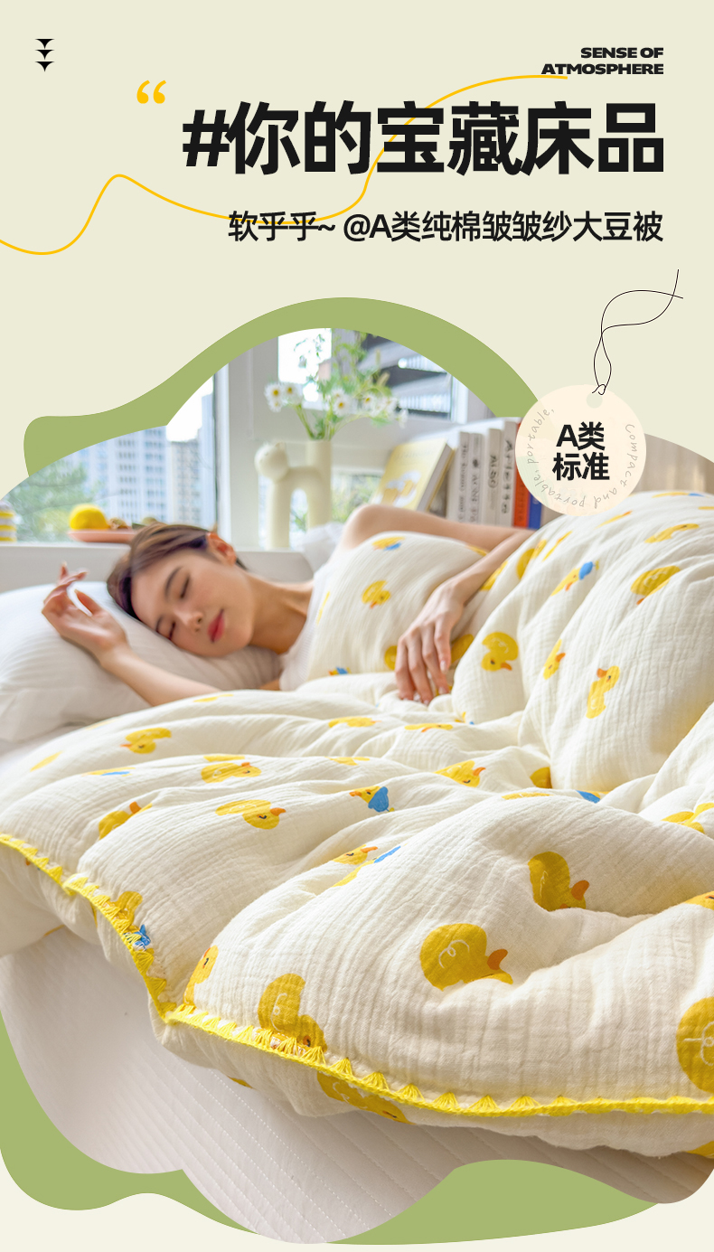 • 91家纺网 家纺一手货源 找家纺 观月轩家纺 2025新款全棉纯棉大豆冬被春秋被被子被芯(10%大豆纤维包检测) 冬被-元气鸭