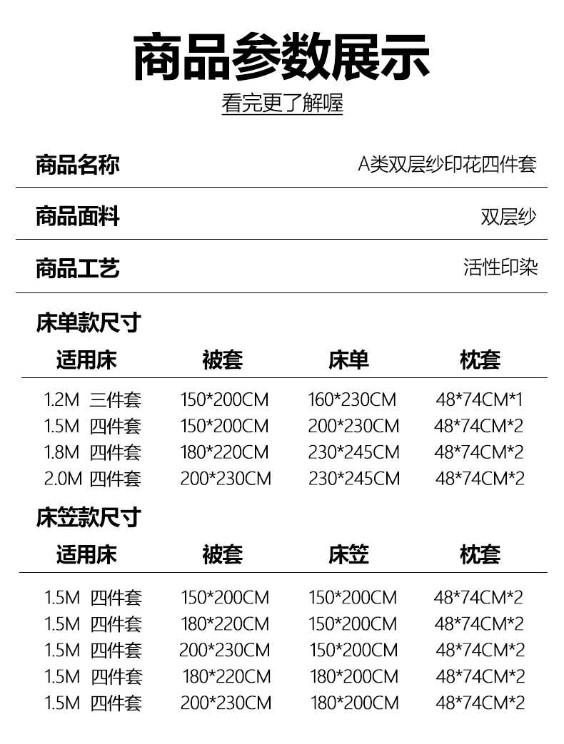 1.8m床笠四件套被套200x230cm | ¥52.00 |