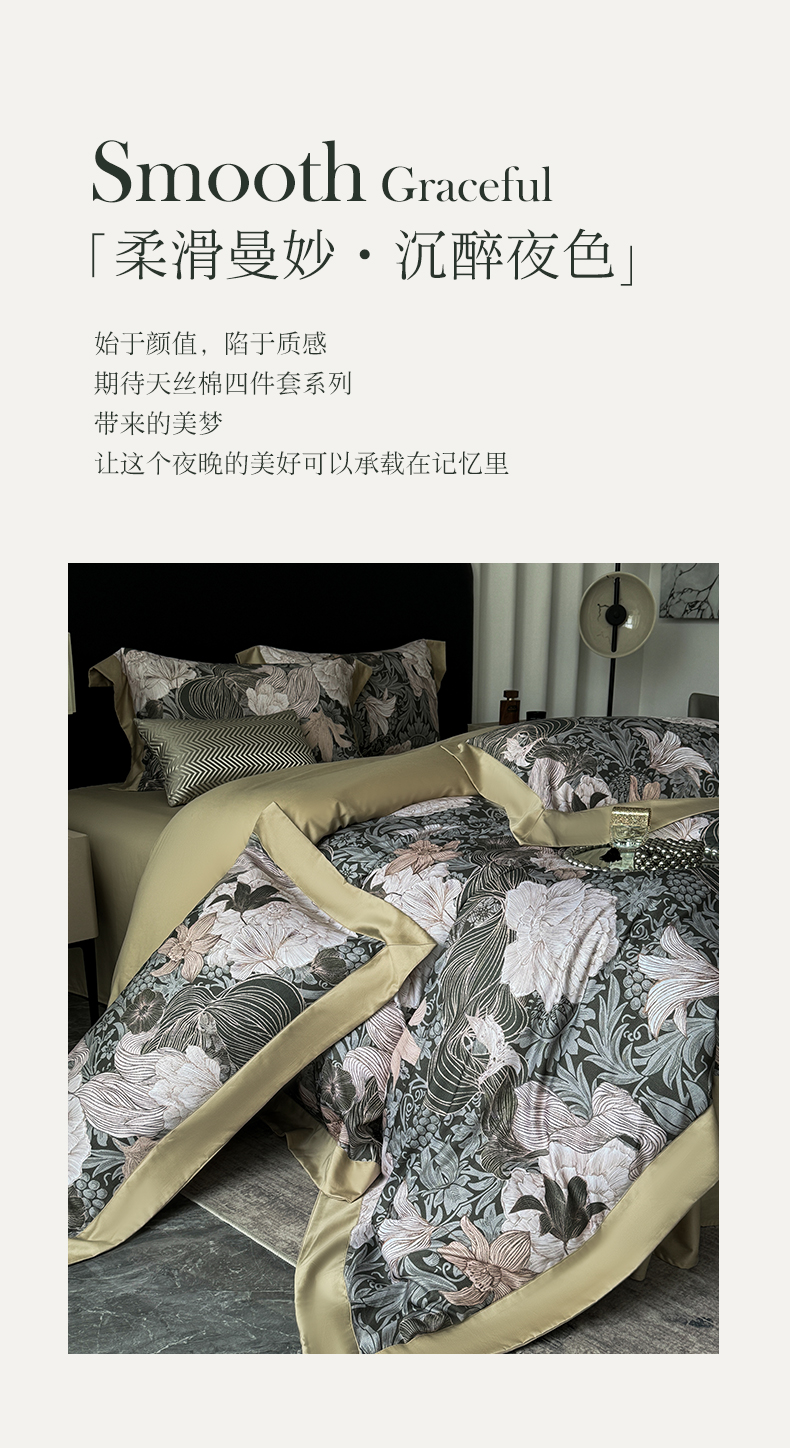 娇逸家居 2025新款铂金天丝棉磨毛数码印花系列四件套 馥郁
