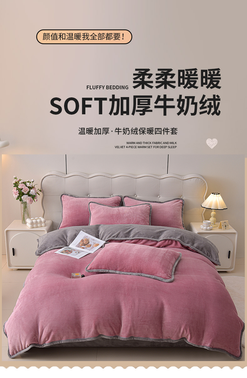 当前位置: 91家纺网 > 商品网购 > 床品套件 > 四件套 > 牛奶绒四件套 > 云恋家纺 加厚牛奶绒四件套简约双面加绒被套罩床单双人家用冬季法兰绒--简约款 简约-豆沙灰