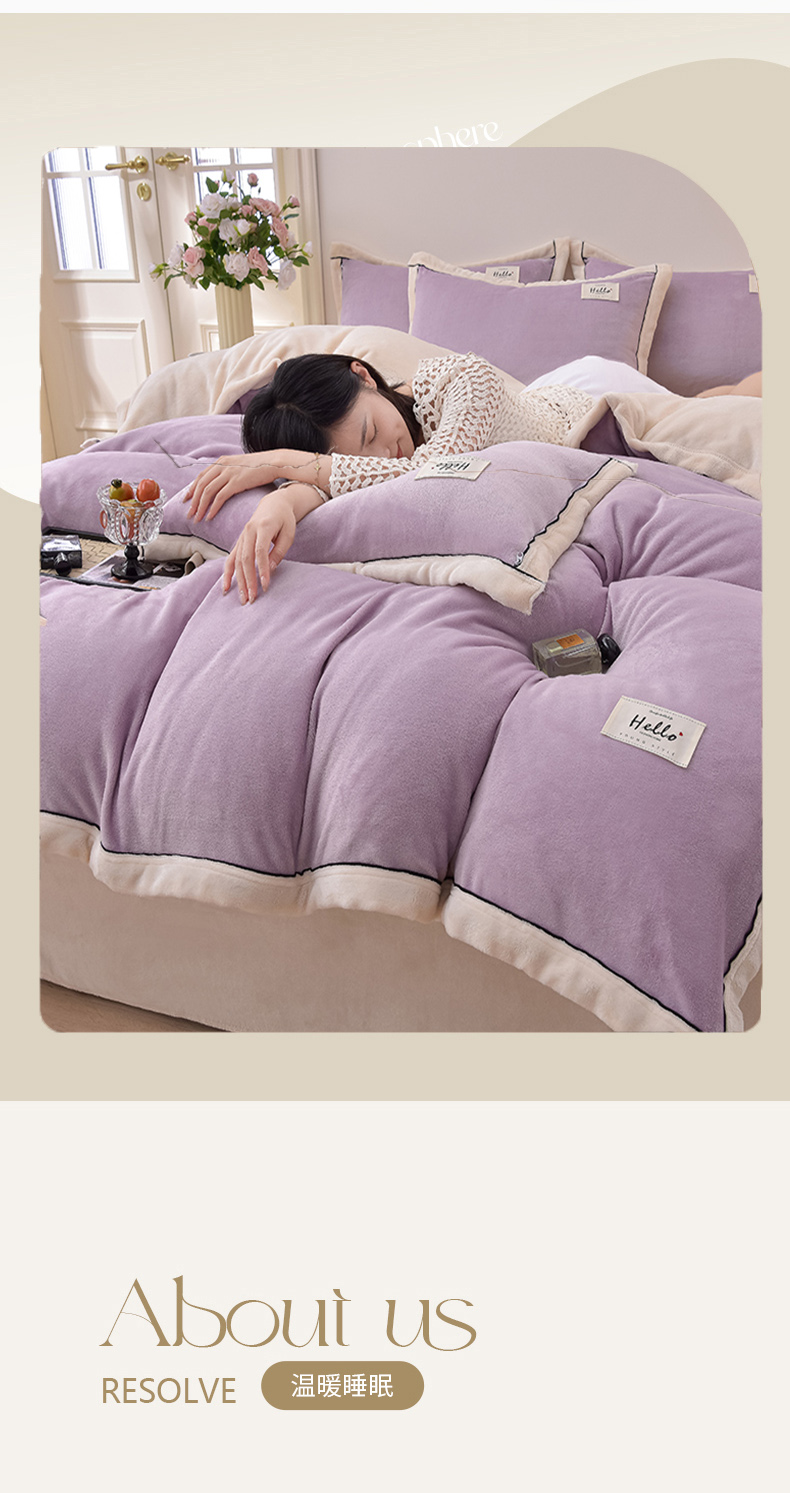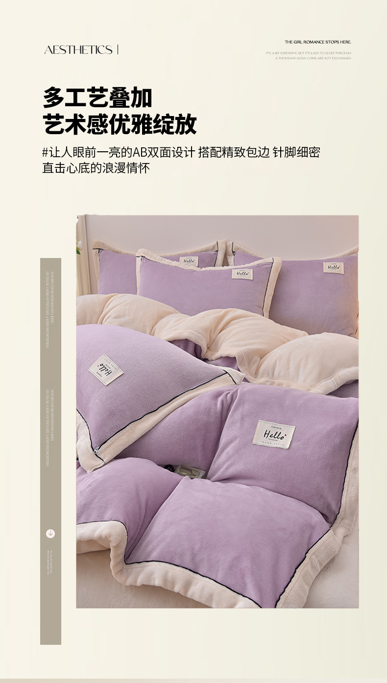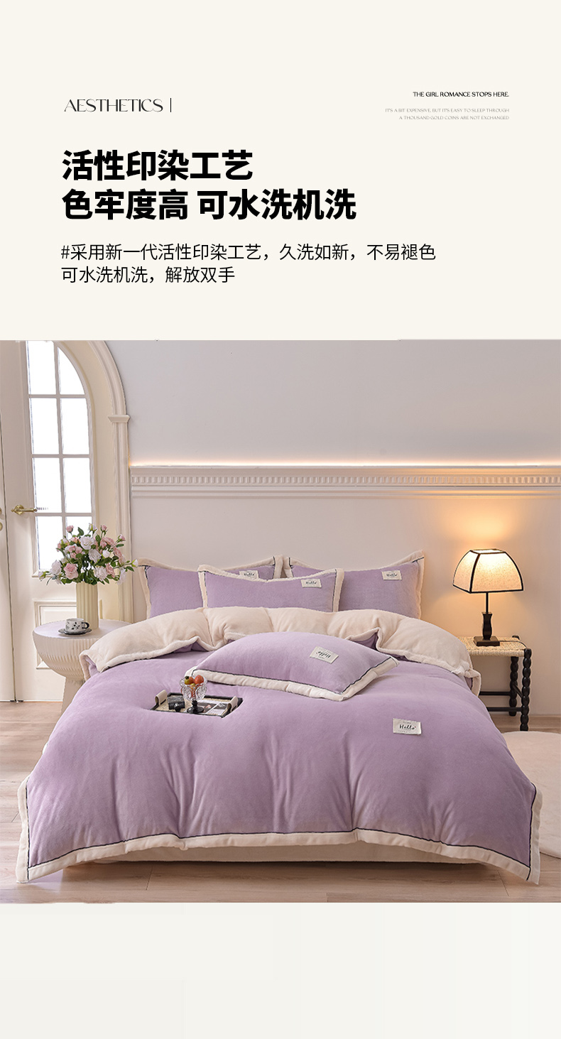 当前位置: 91家纺网 > 商品网购 > 床品套件 > 四件套 > 牛奶绒四件套 > 云恋家纺 纯色双面绒牛奶绒床上用品四件套加厚绒法兰绒床笠被套罩床单双人 青春-紫拼米