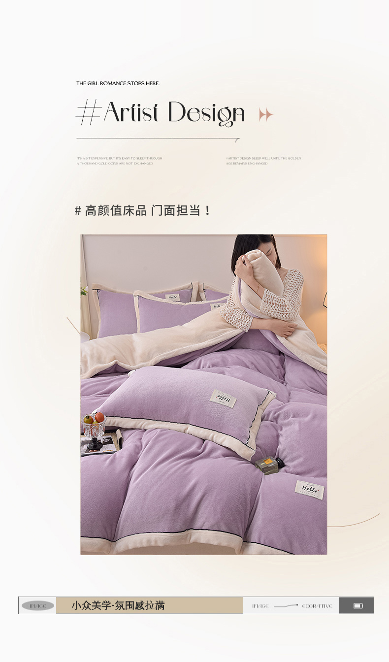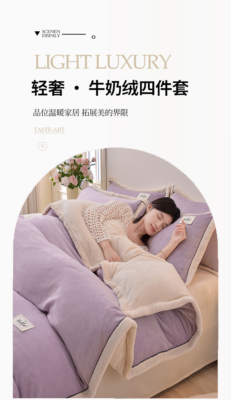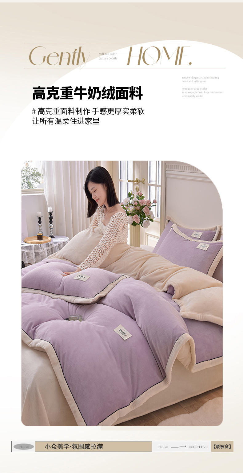 当前位置: 91家纺网 > 商品网购 > 床品套件 > 四件套 > 牛奶绒四件套 > 云恋家纺 纯色双面绒牛奶绒床上用品四件套加厚绒法兰绒床笠被套罩床单双人 青春-紫拼米