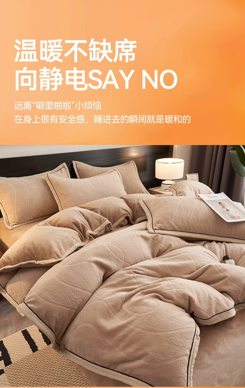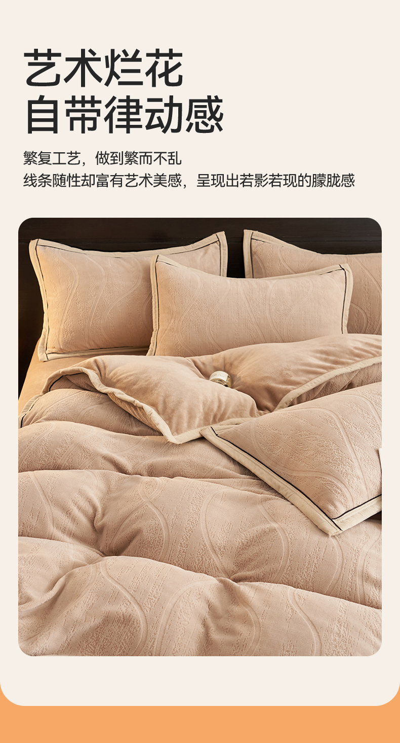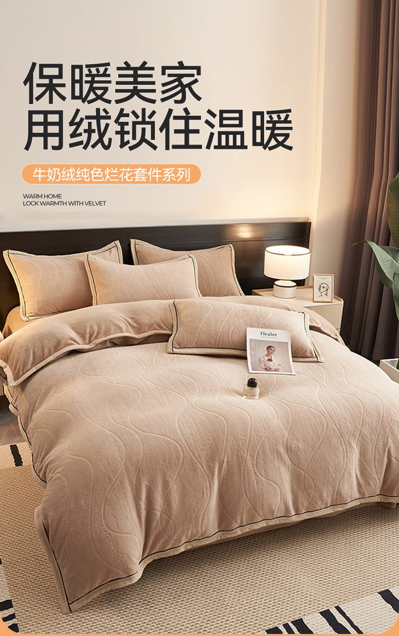 当前位置: 91家纺网 > 商品网购 > 床品套件 > 四件套 > 牛奶绒四件套 > 恒爱家纺 2025新款牛奶绒纯色烂花四件套 卡曼-卡其