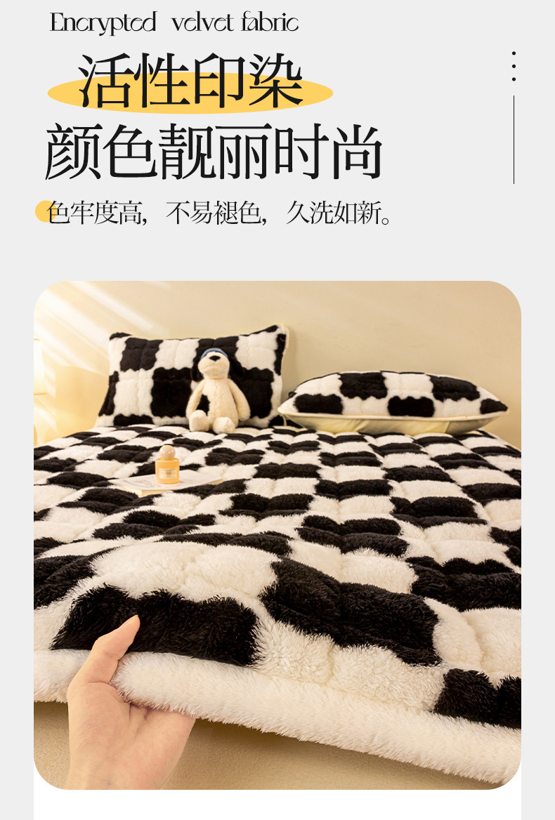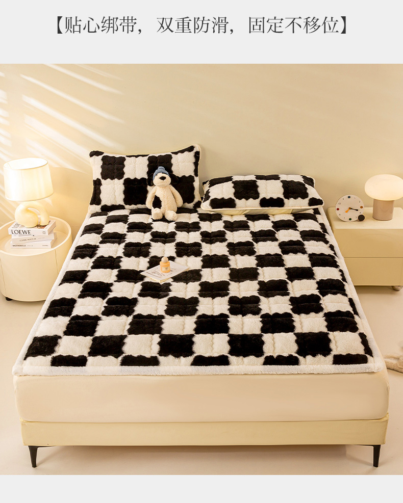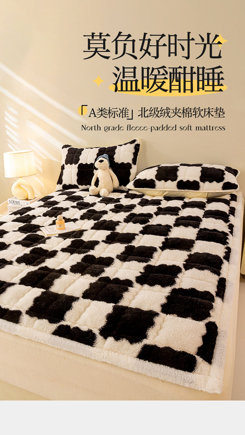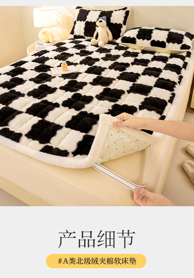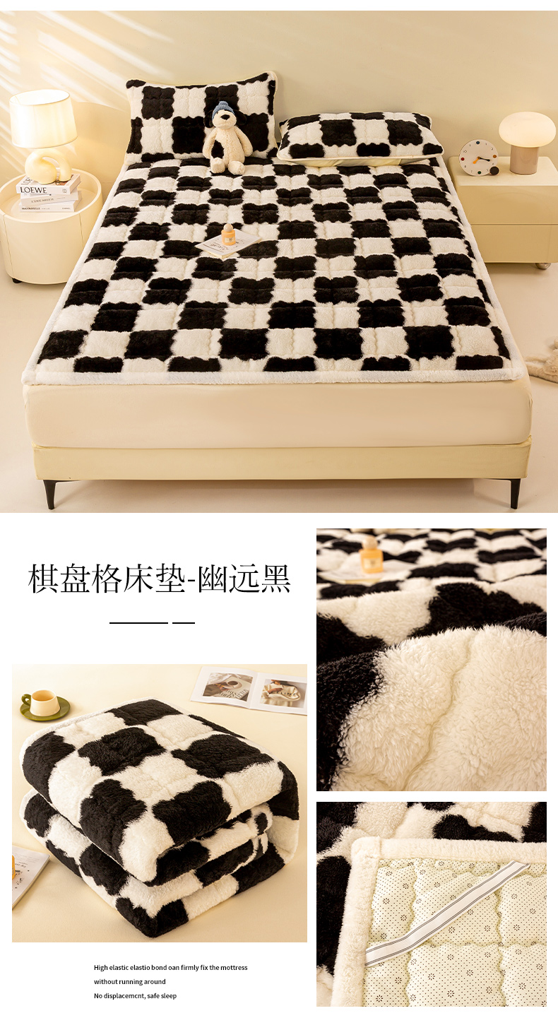 • 91家纺网 家纺一手货源 找家纺 眠势力 2025新款北极绒床垫加绒牛奶绒床褥子秋冬保暖珊瑚绒夹棉床护垫 棋盘格-幽远黑