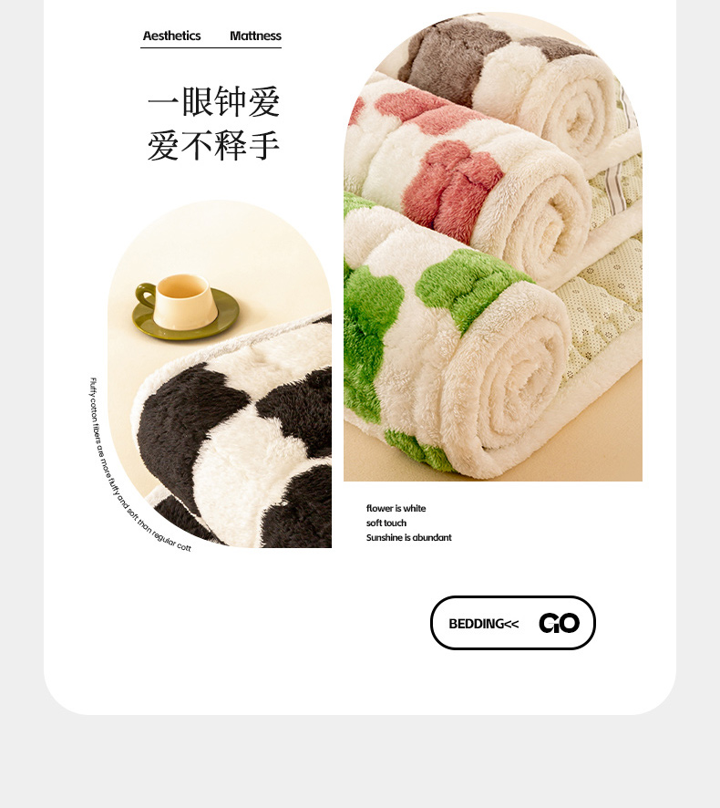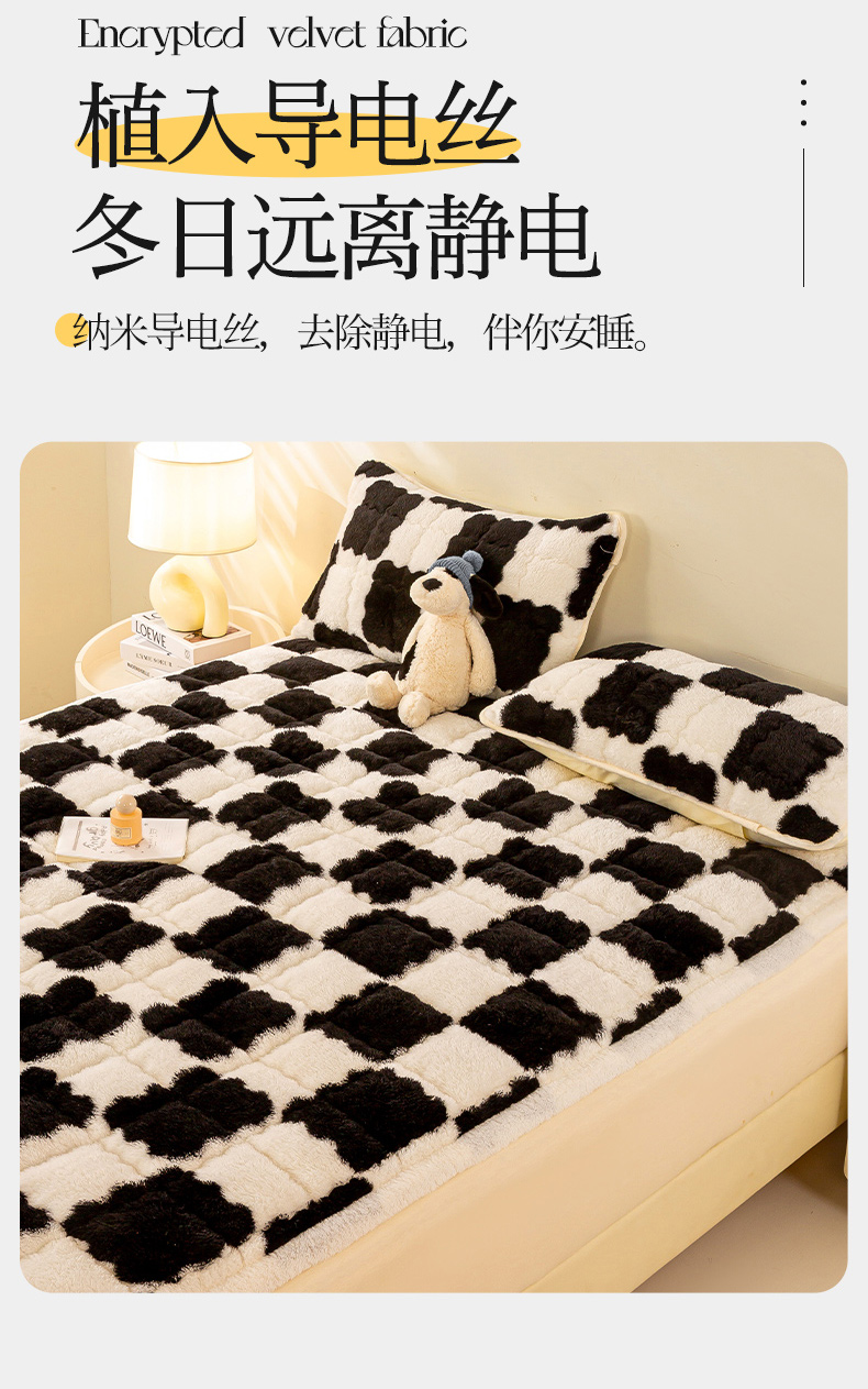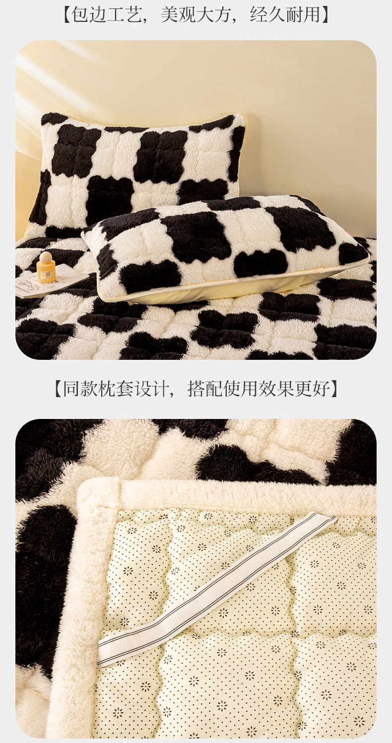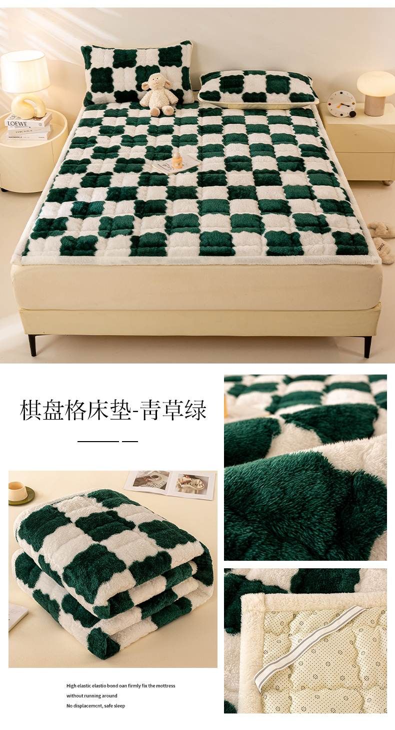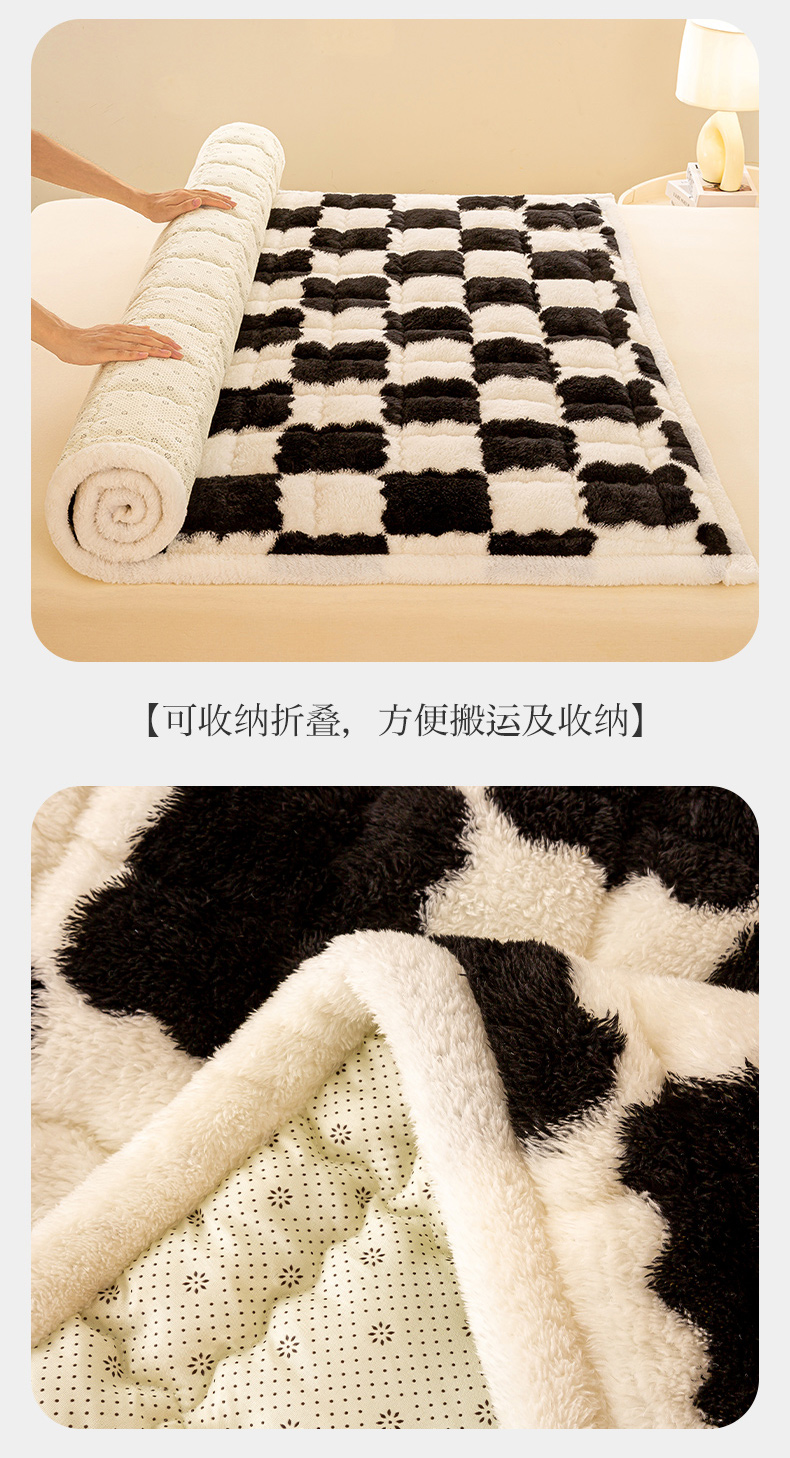 • 91家纺网 家纺一手货源 找家纺 眠势力 2025新款北极绒床垫加绒牛奶绒床褥子秋冬保暖珊瑚绒夹棉床护垫 棋盘格-幽远黑
