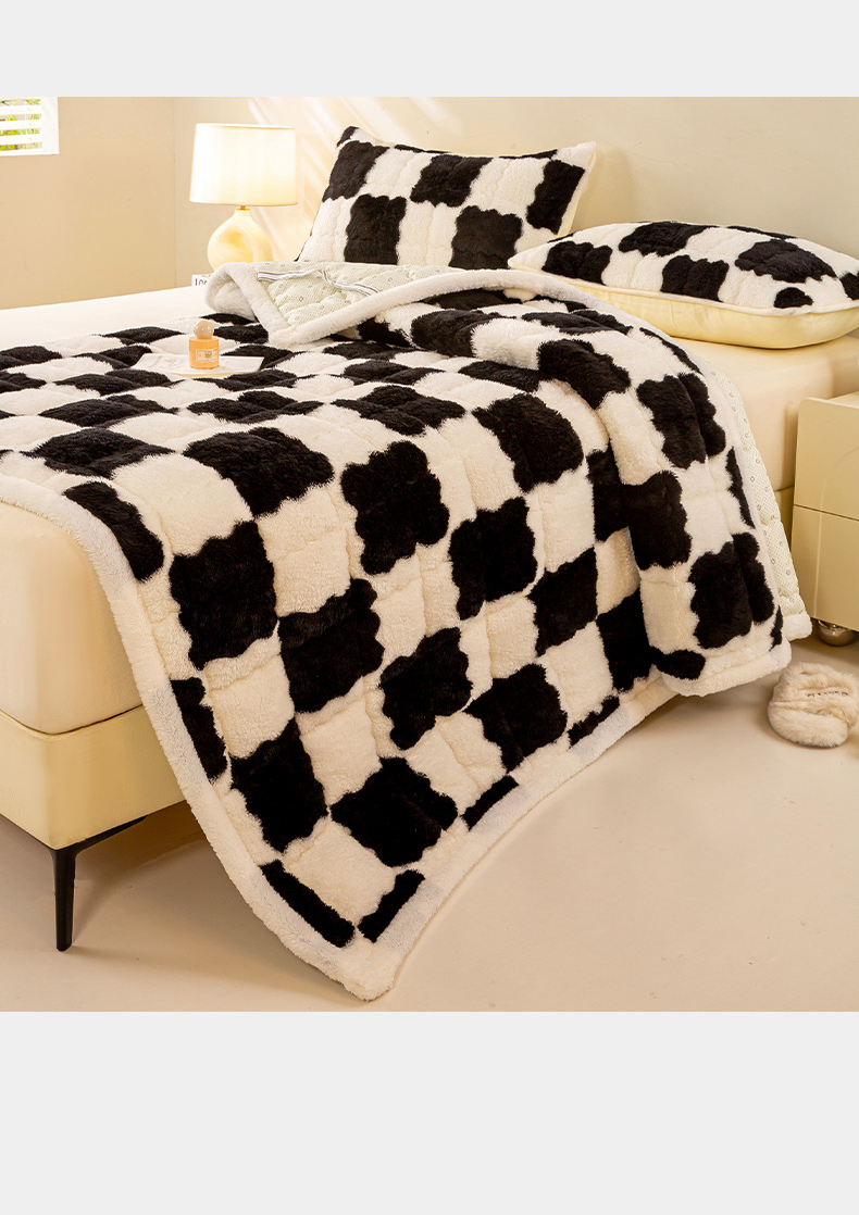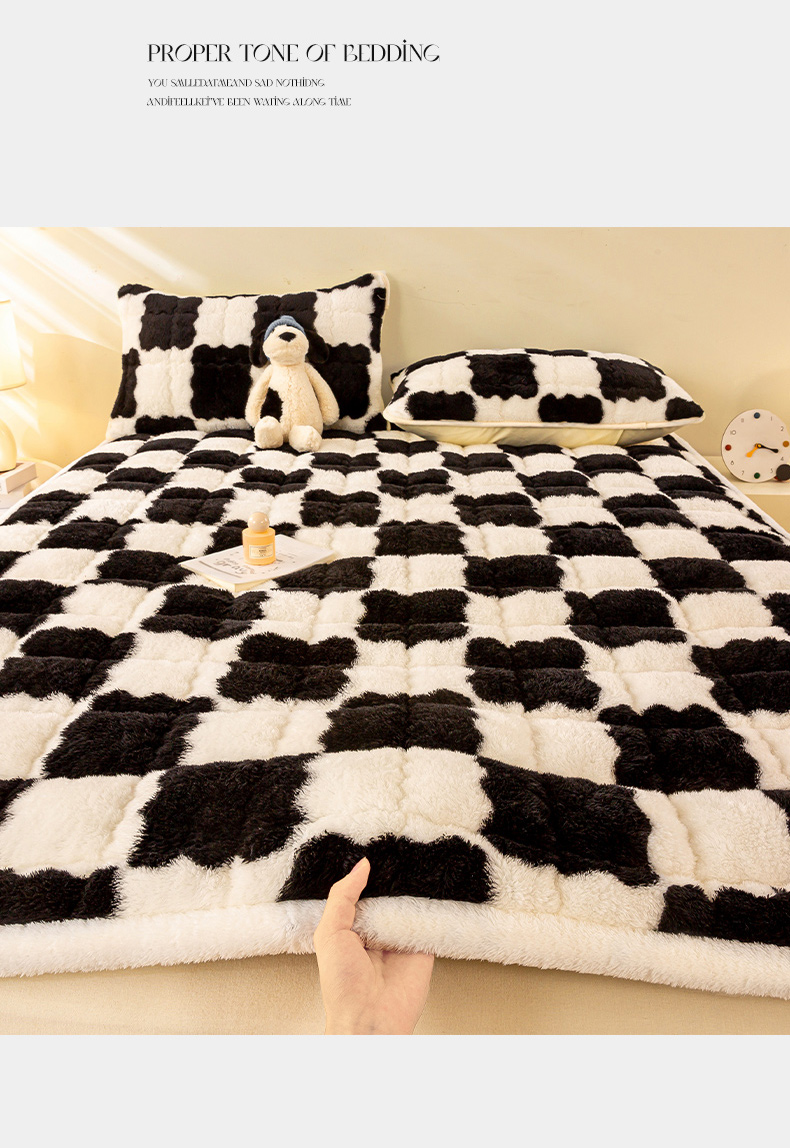 眠势力 2025新款北极绒床垫加绒牛奶绒床褥子秋冬保暖珊瑚绒夹棉床护垫 棋盘格-幽远黑