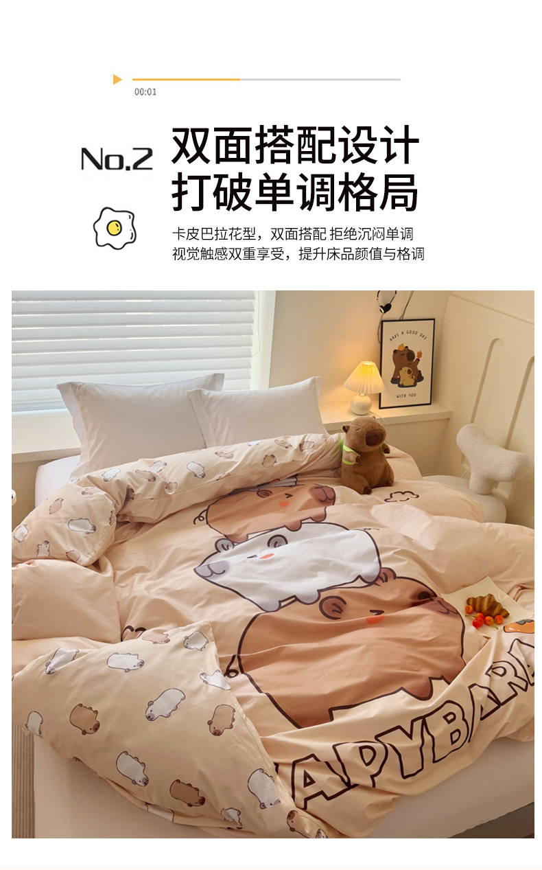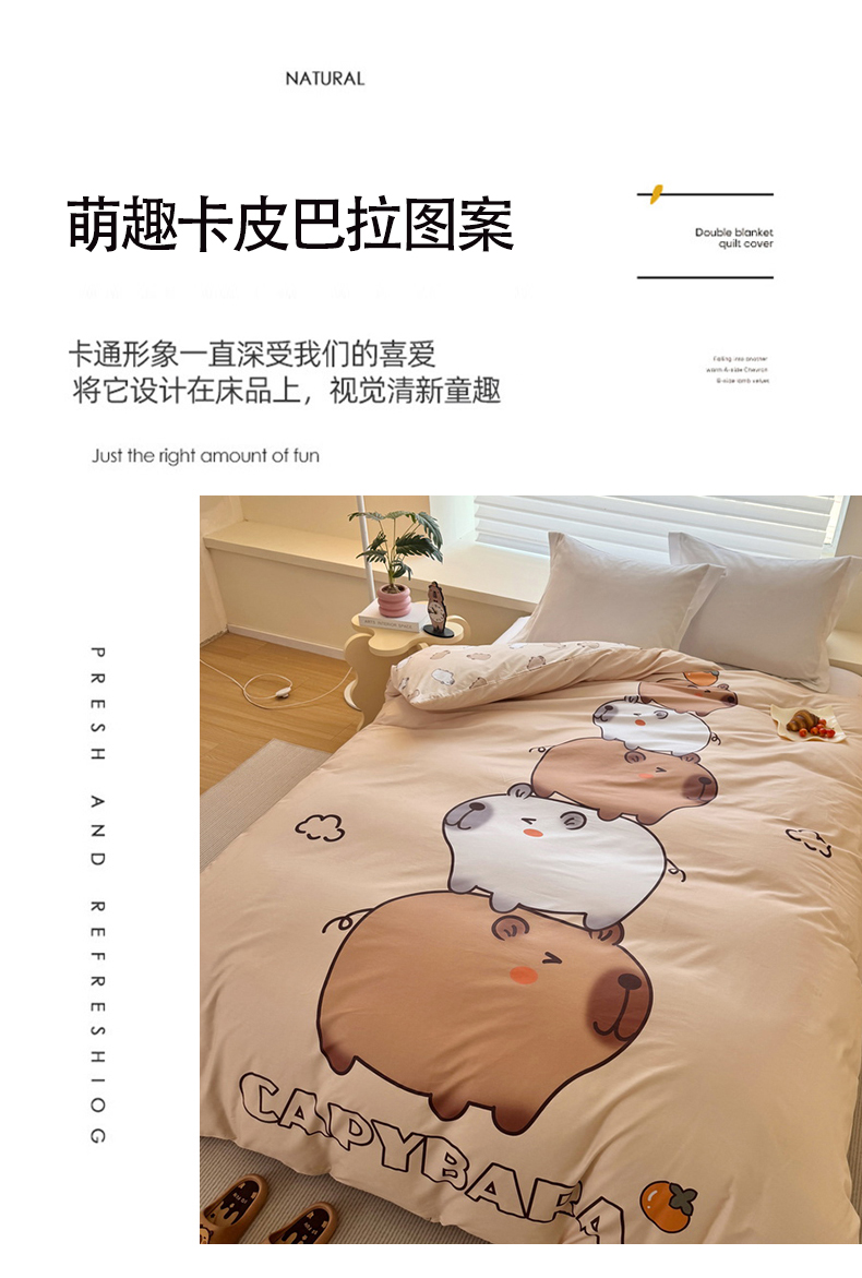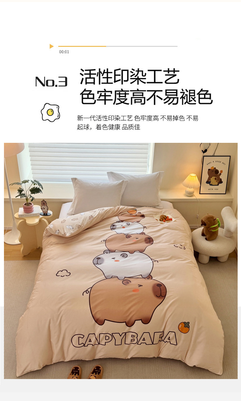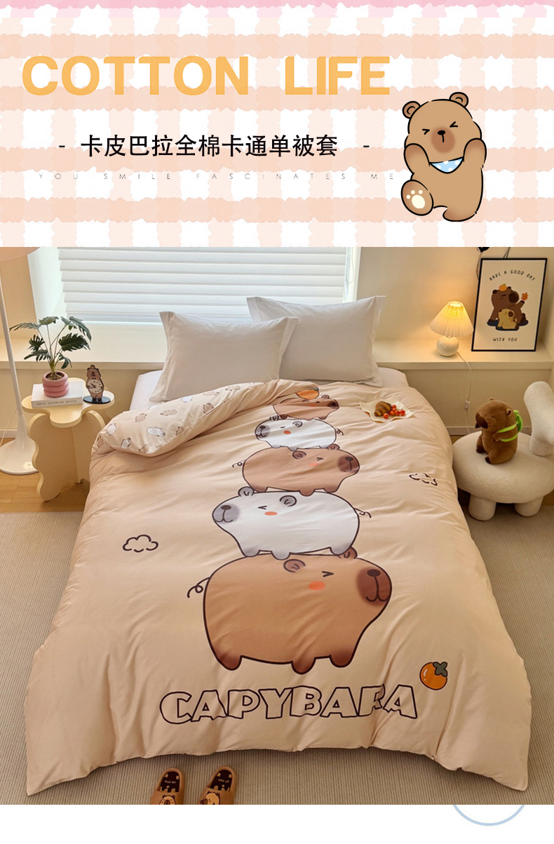 商品名称:蘭菲家纺 2025新款全棉大版卡皮巴拉系列单品被套 沉浸式